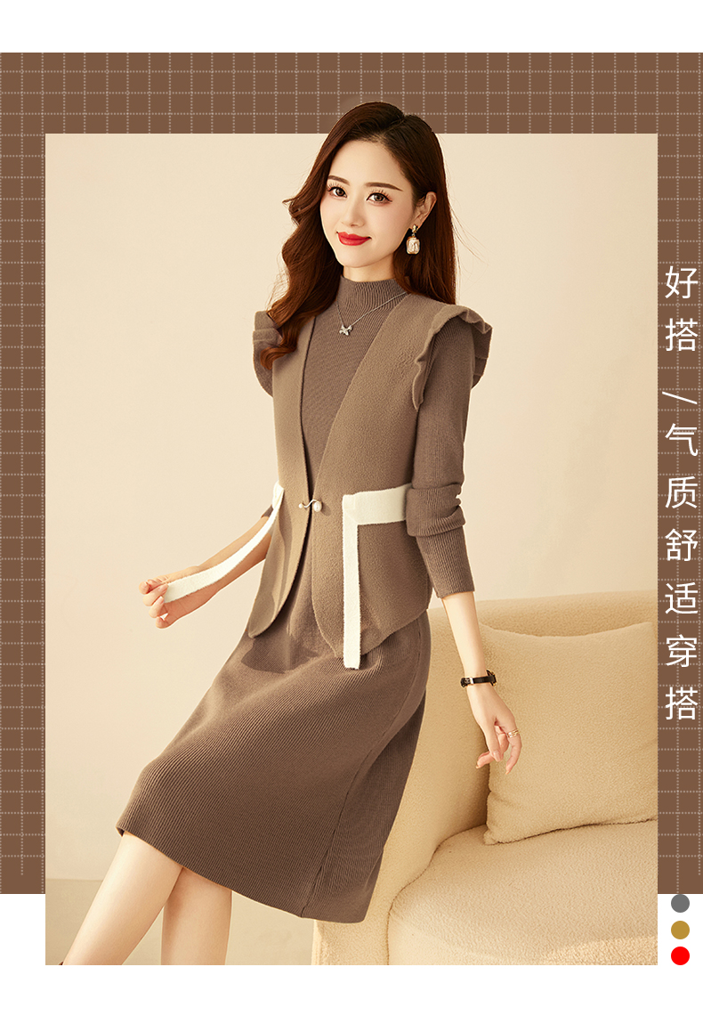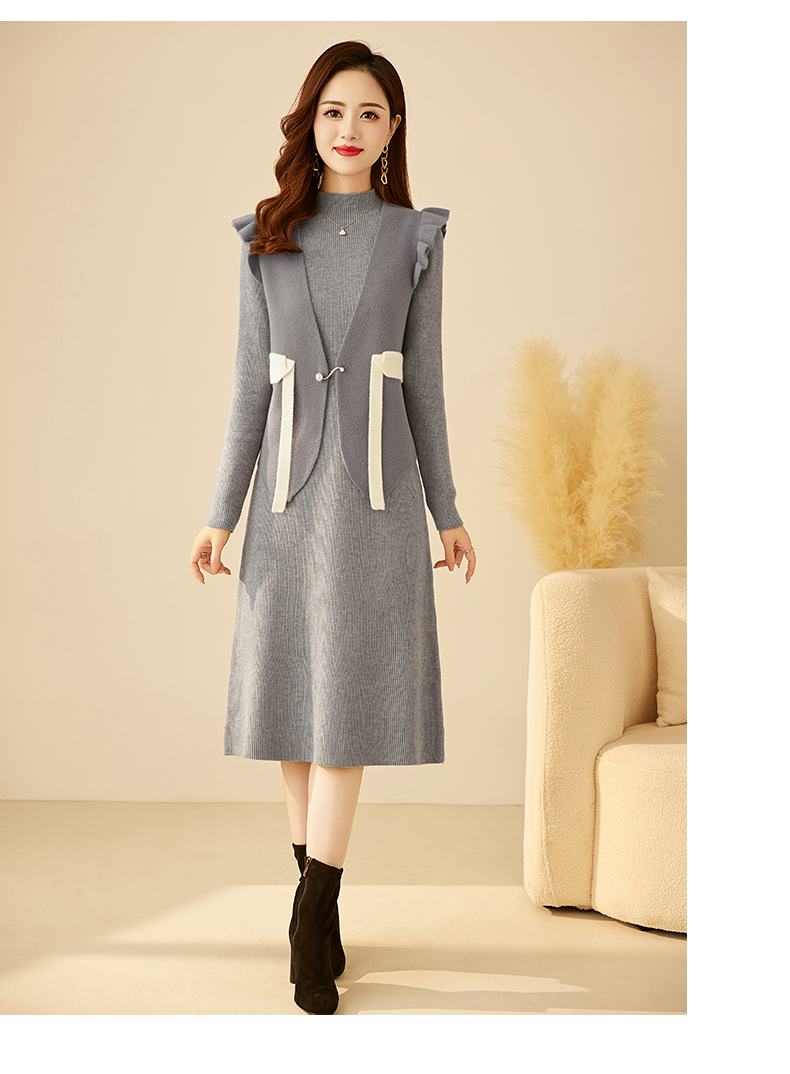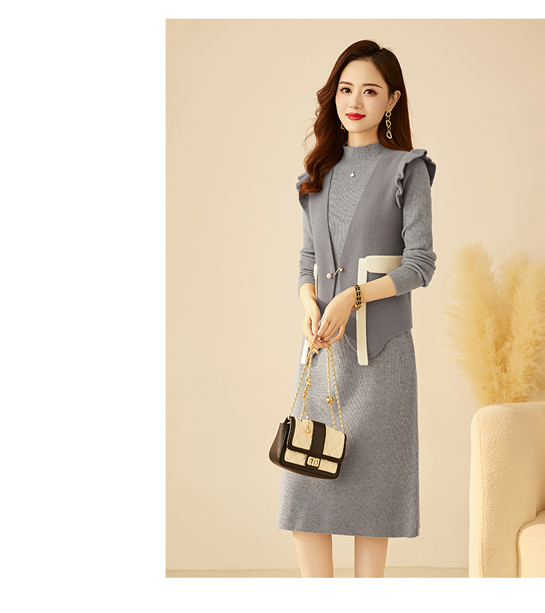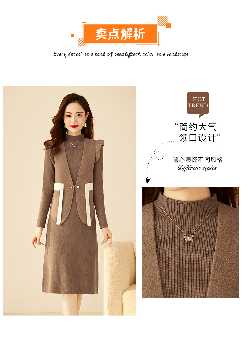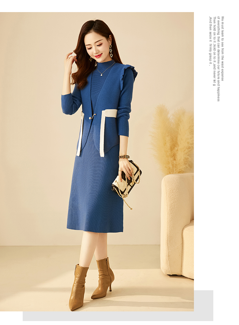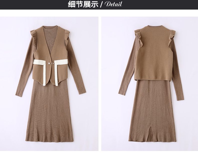 秋冬新款,洋气荷叶边修身设计飘带马甲+珍珠扣两件套HR-YBER352