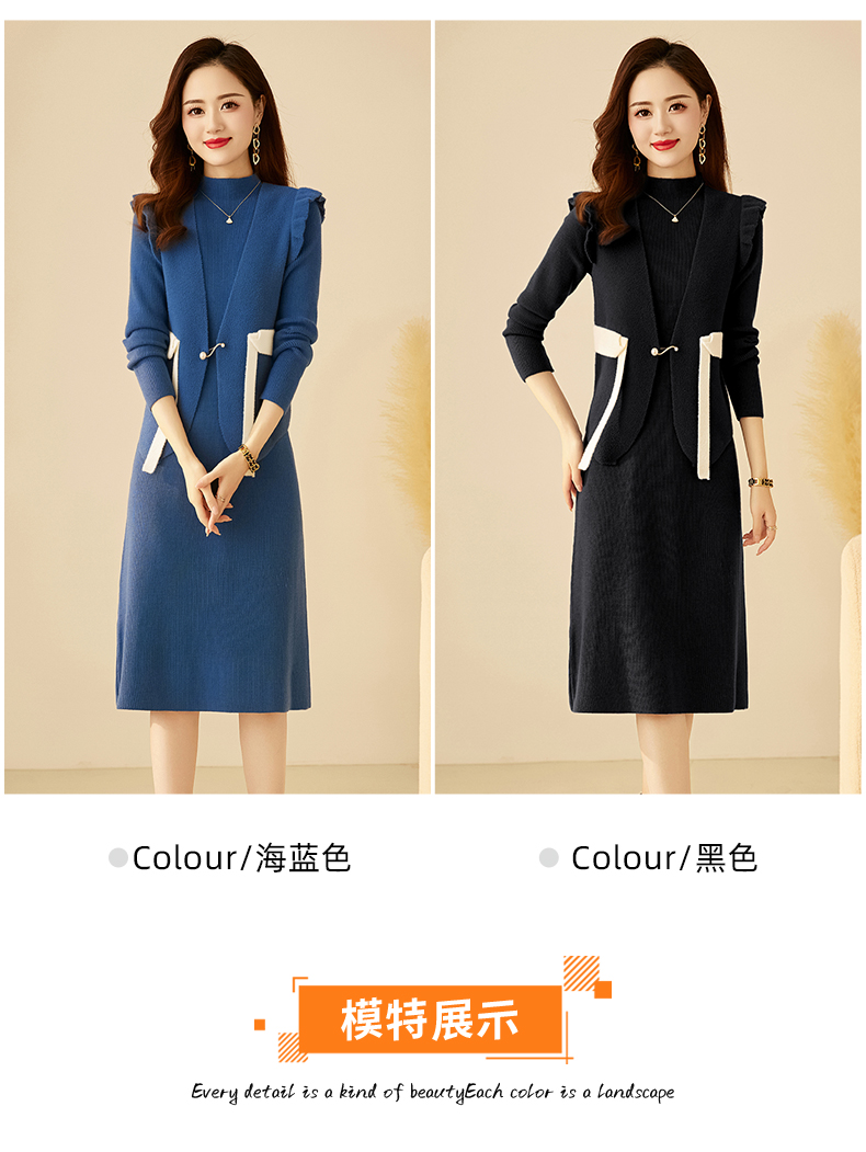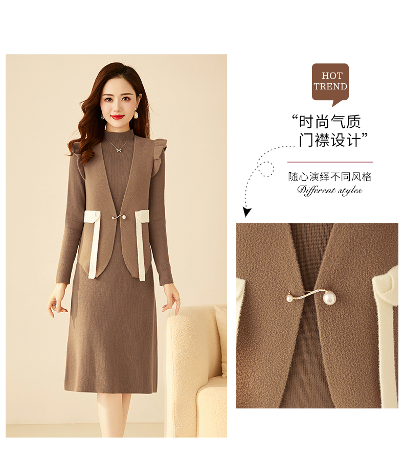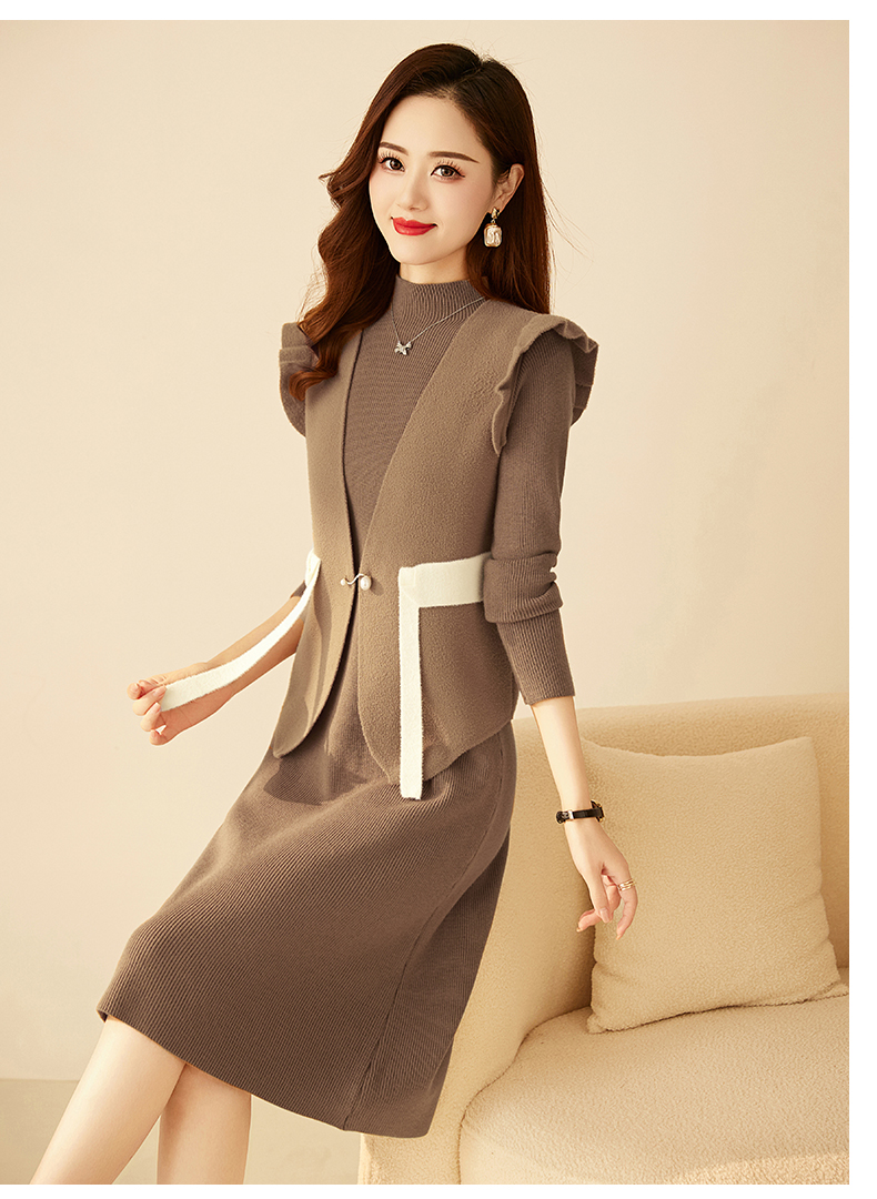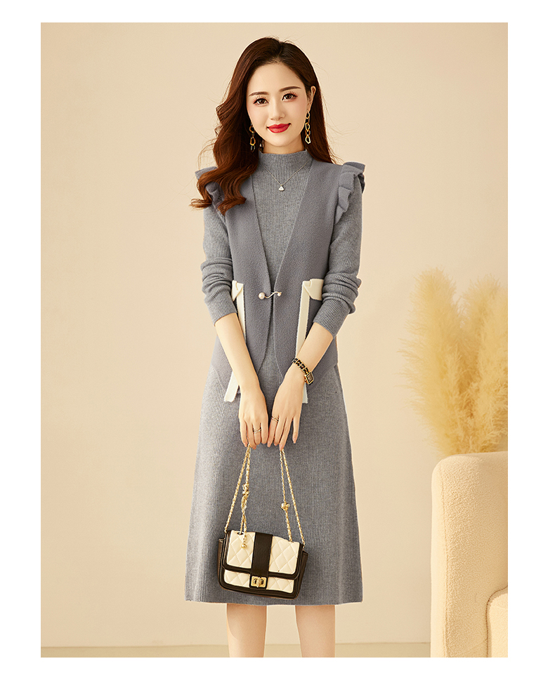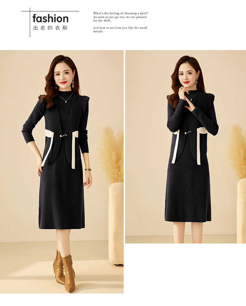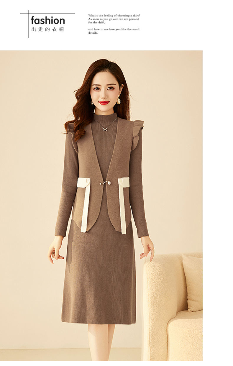 秋冬新款,洋气荷叶边修身设计飘带马甲+珍珠扣两件套HR-YBER352