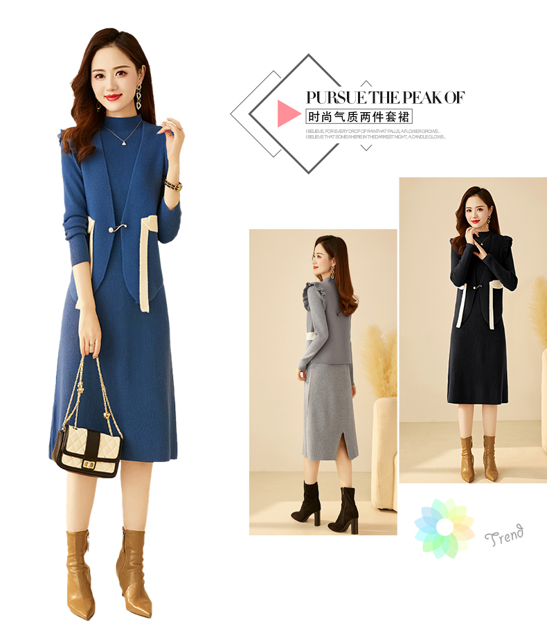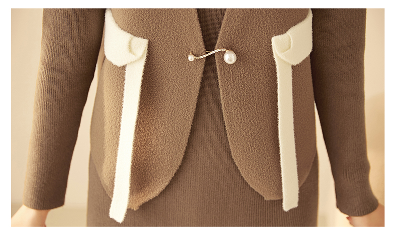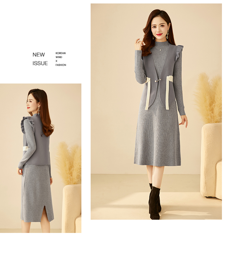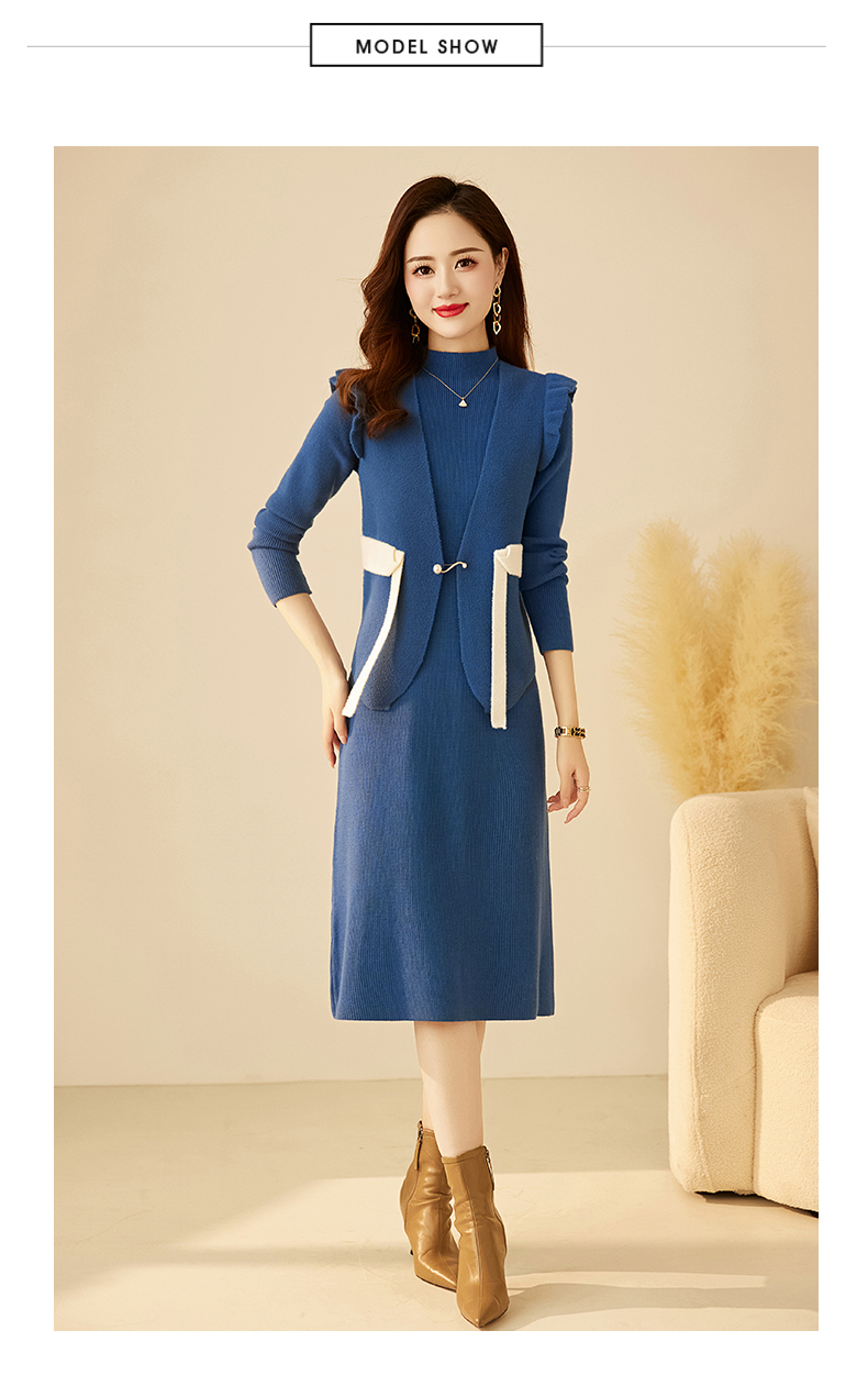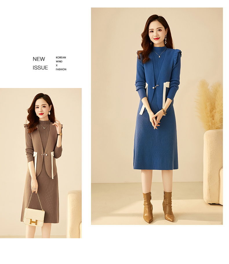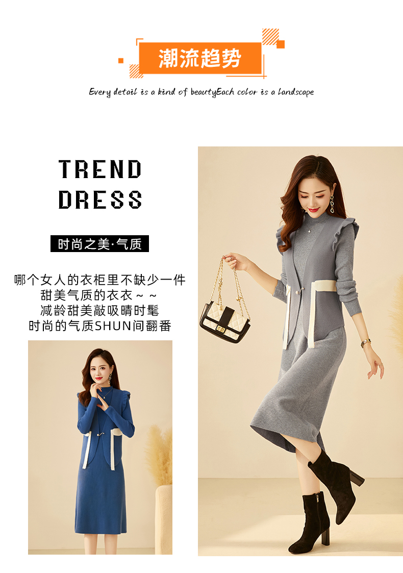 秋冬新款,洋气荷叶边修身设计飘带马甲+珍珠扣两件套HR-YBER352