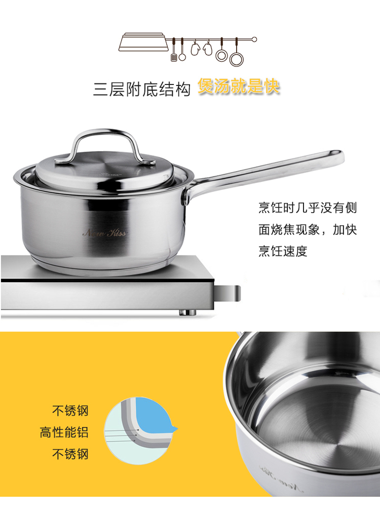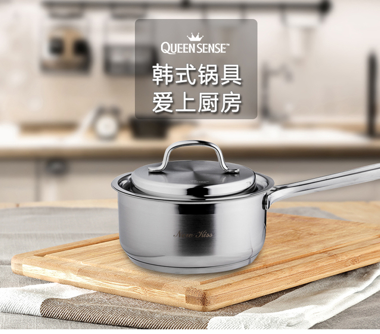 韩国原产QUEEN SENSE不锈钢锅汤锅小奶锅NEWKISS系列16CM