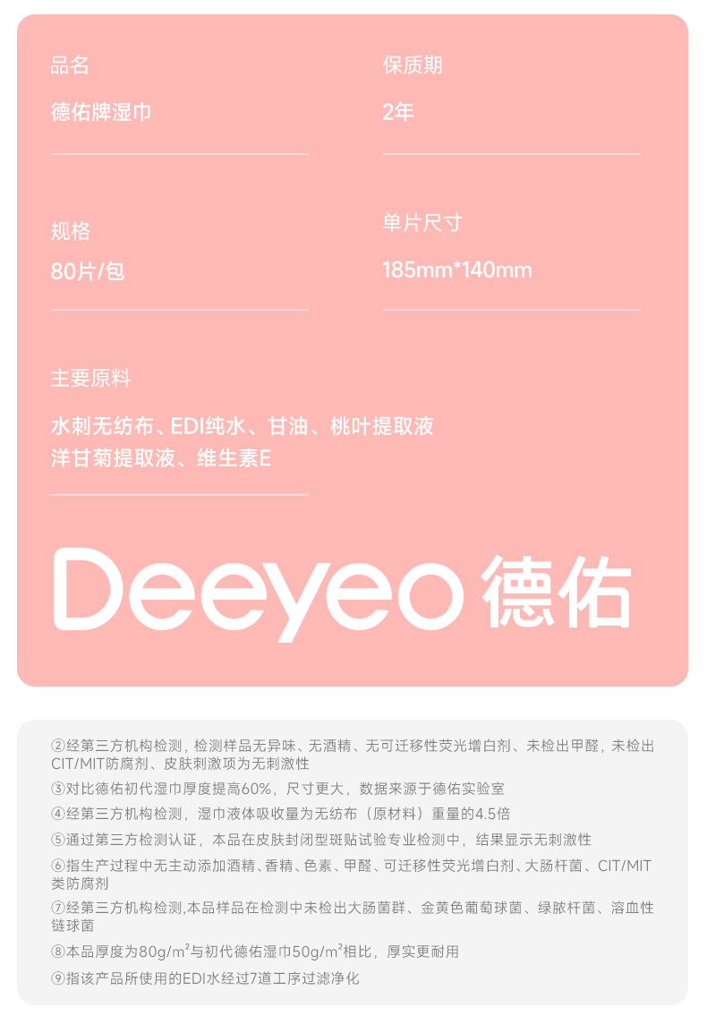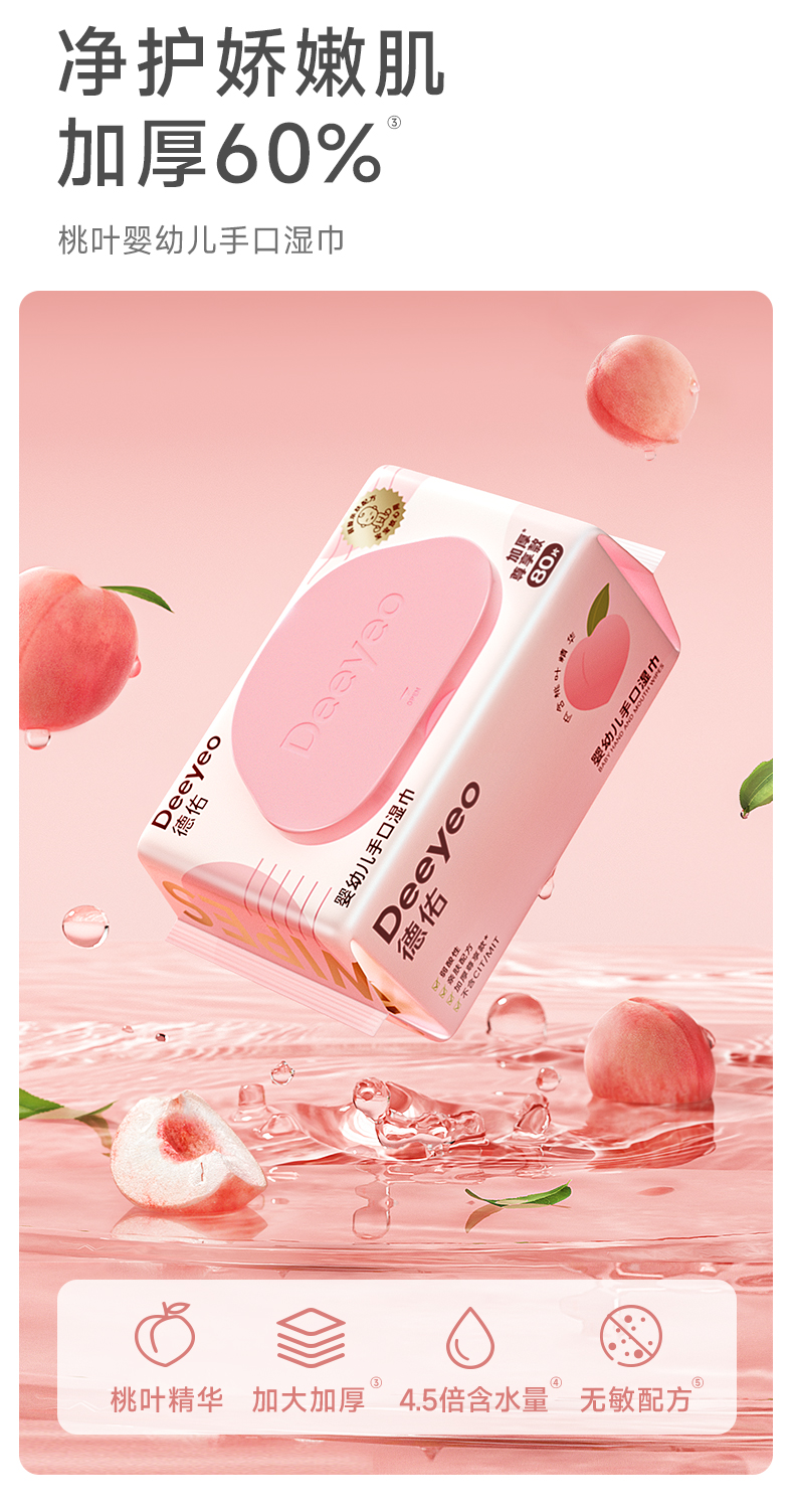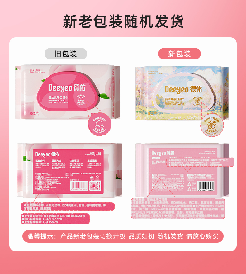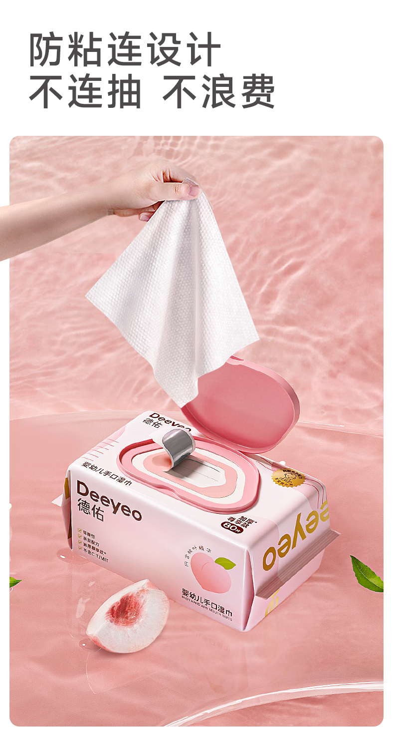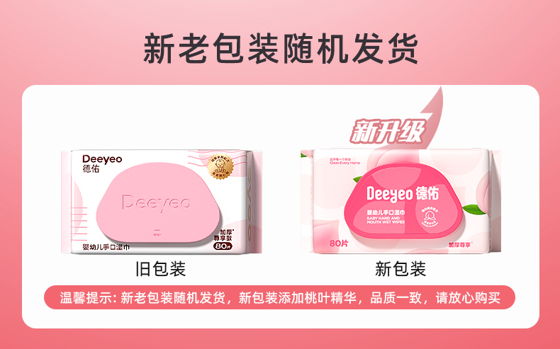 【GX】德佑桃叶款超厚80g手口湿巾80抽*4包