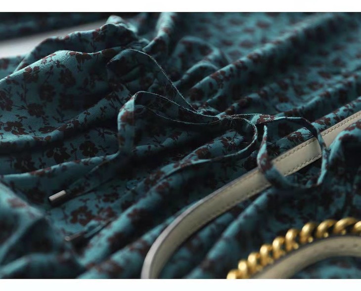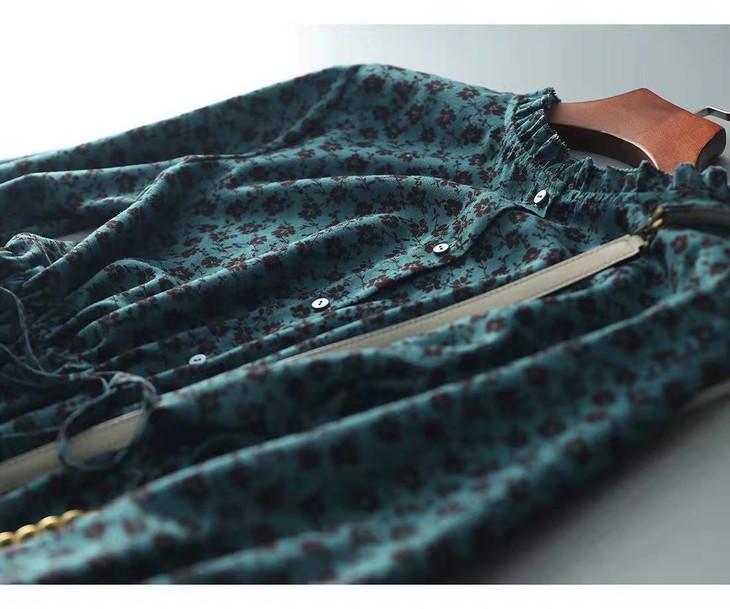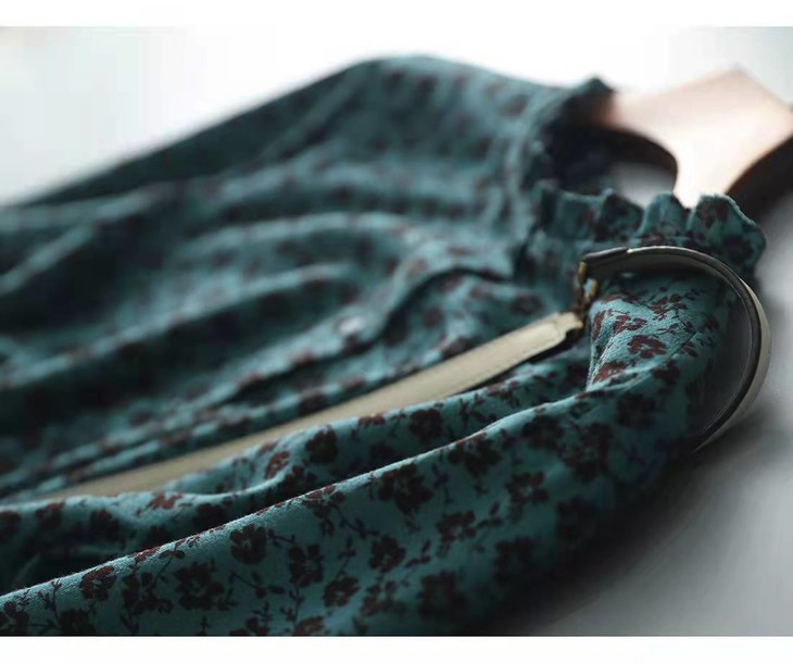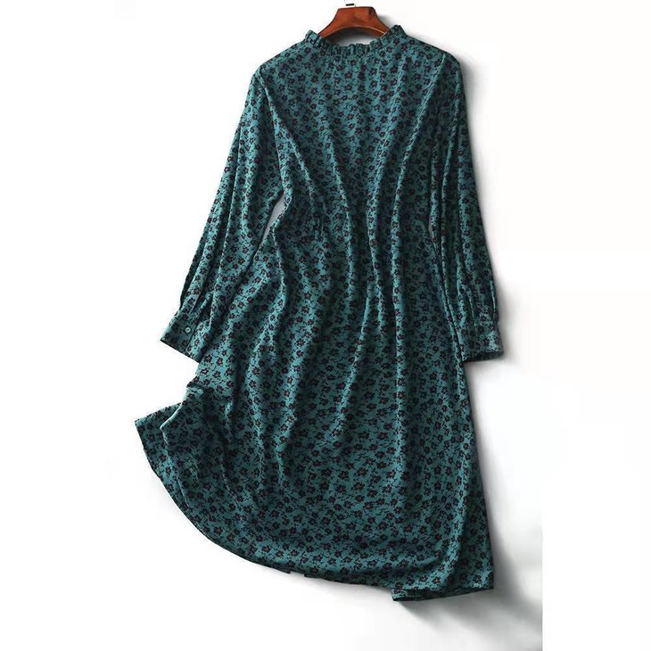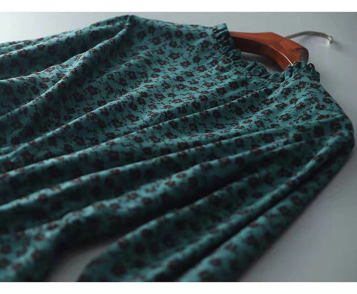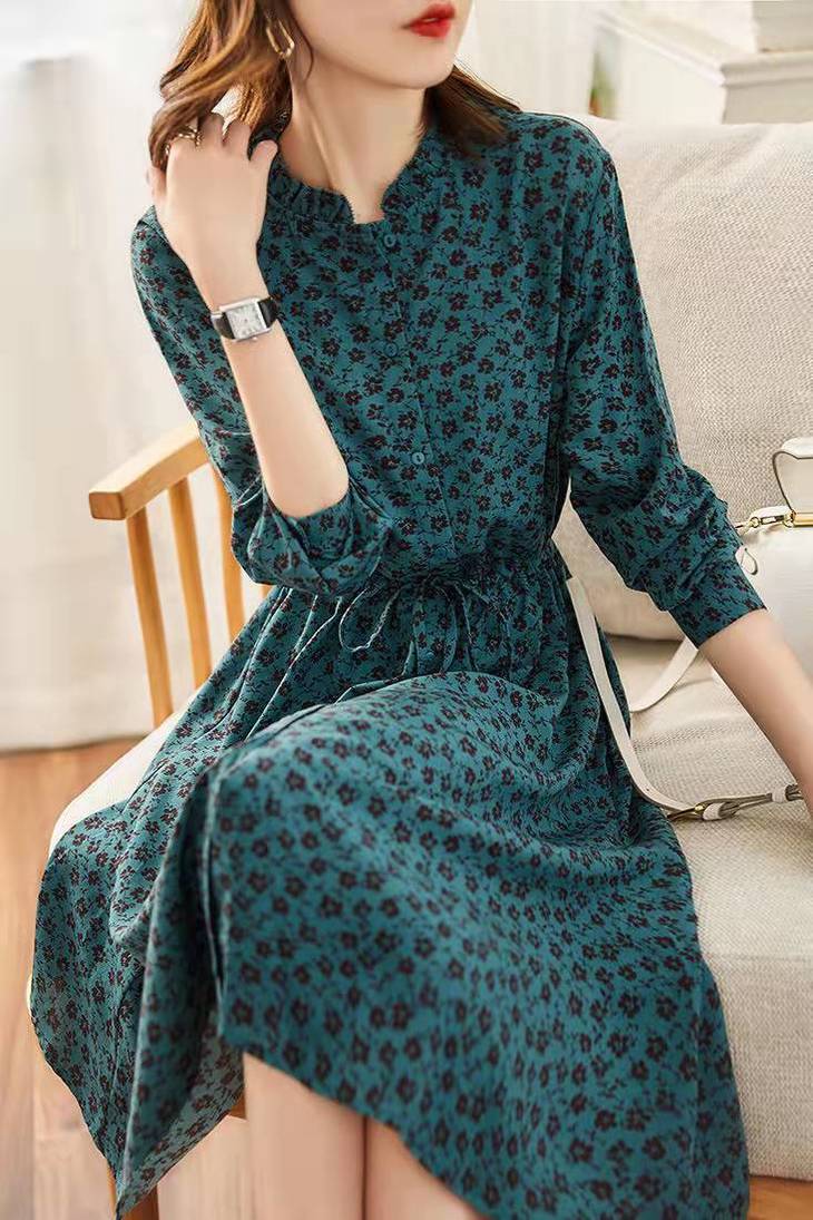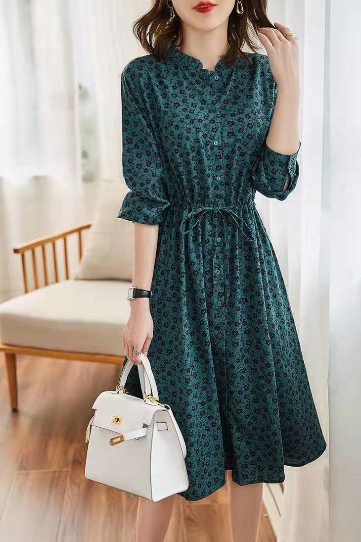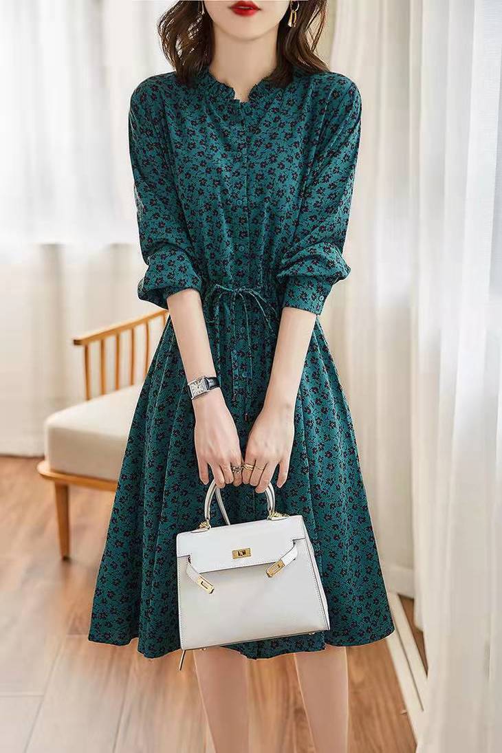 MZ 117897复古小碎花木耳领收腰显瘦连衣裙