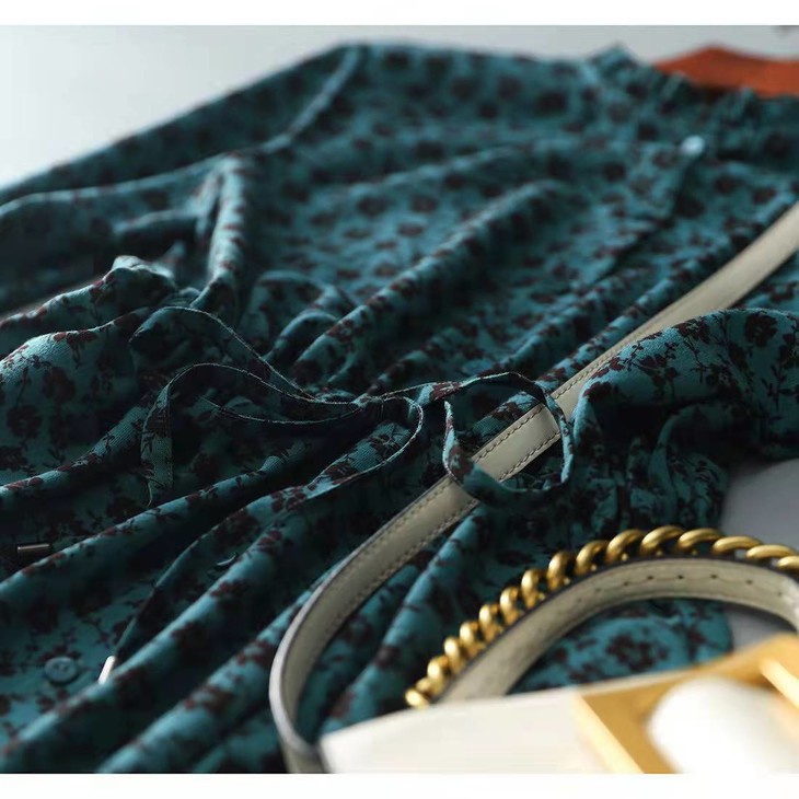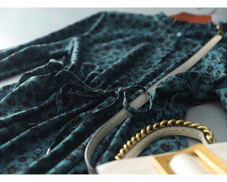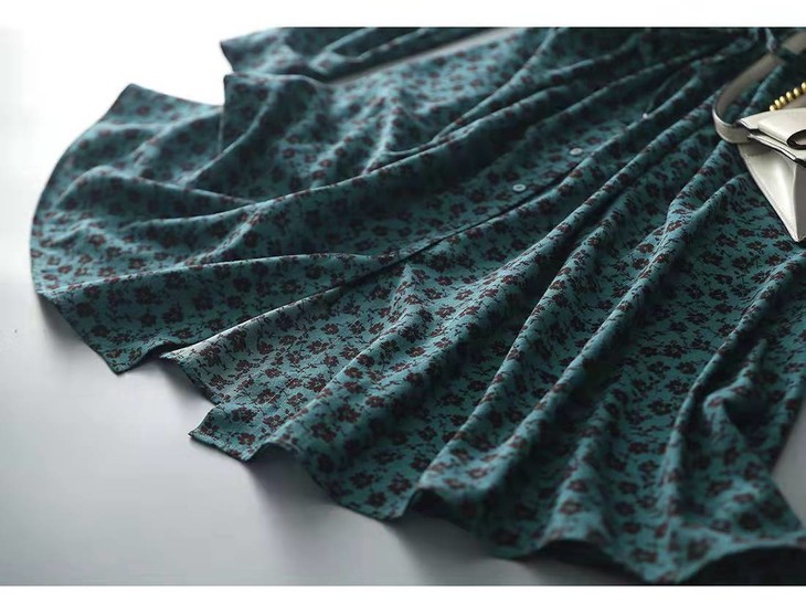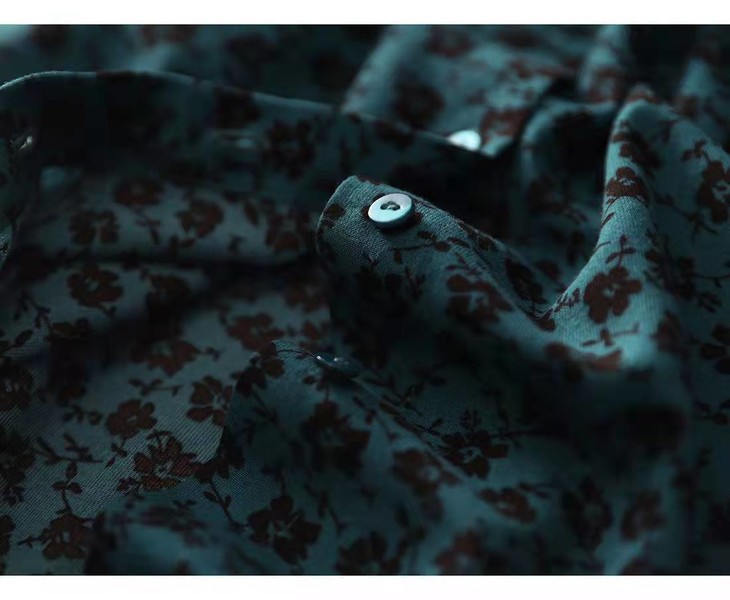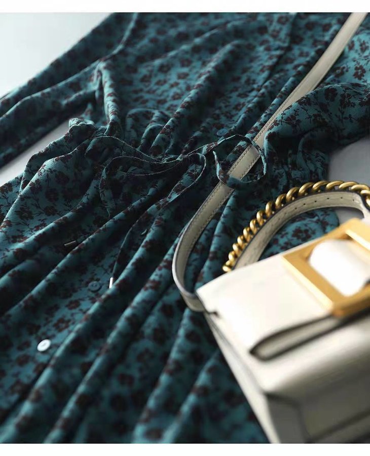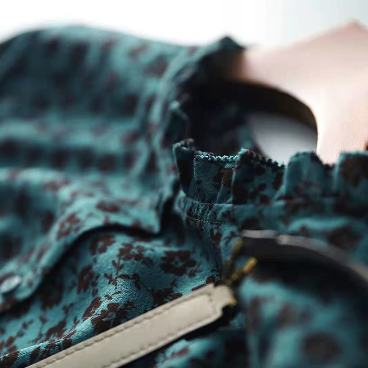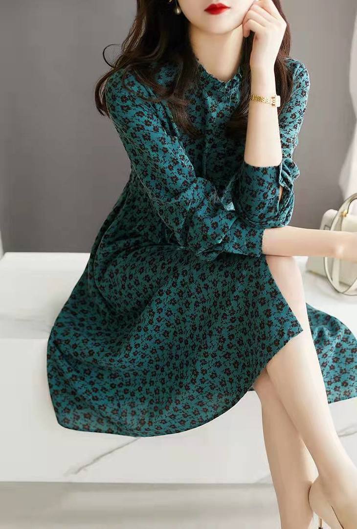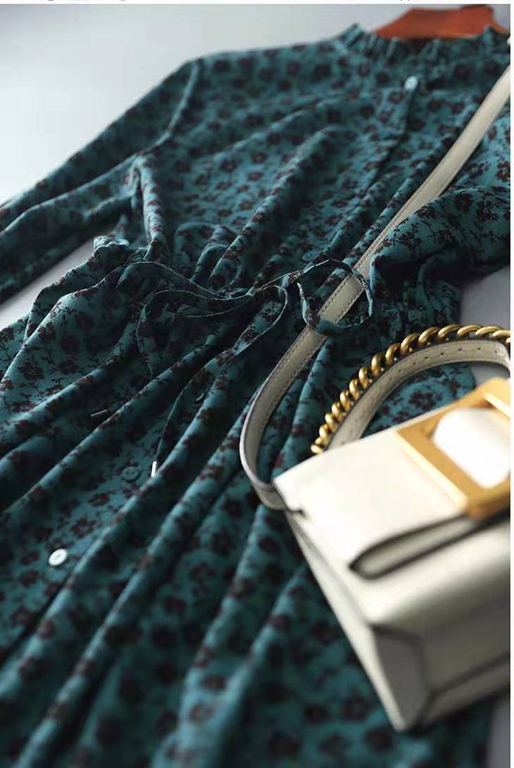 MZ 117897复古小碎花木耳领收腰显瘦连衣裙