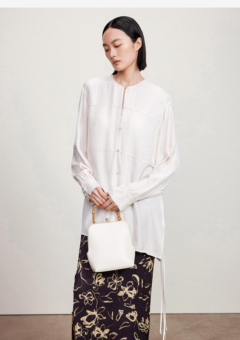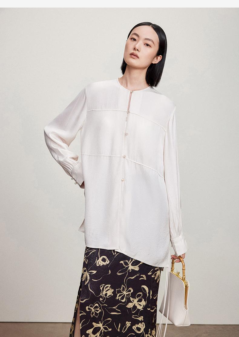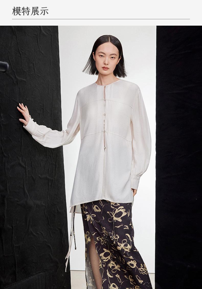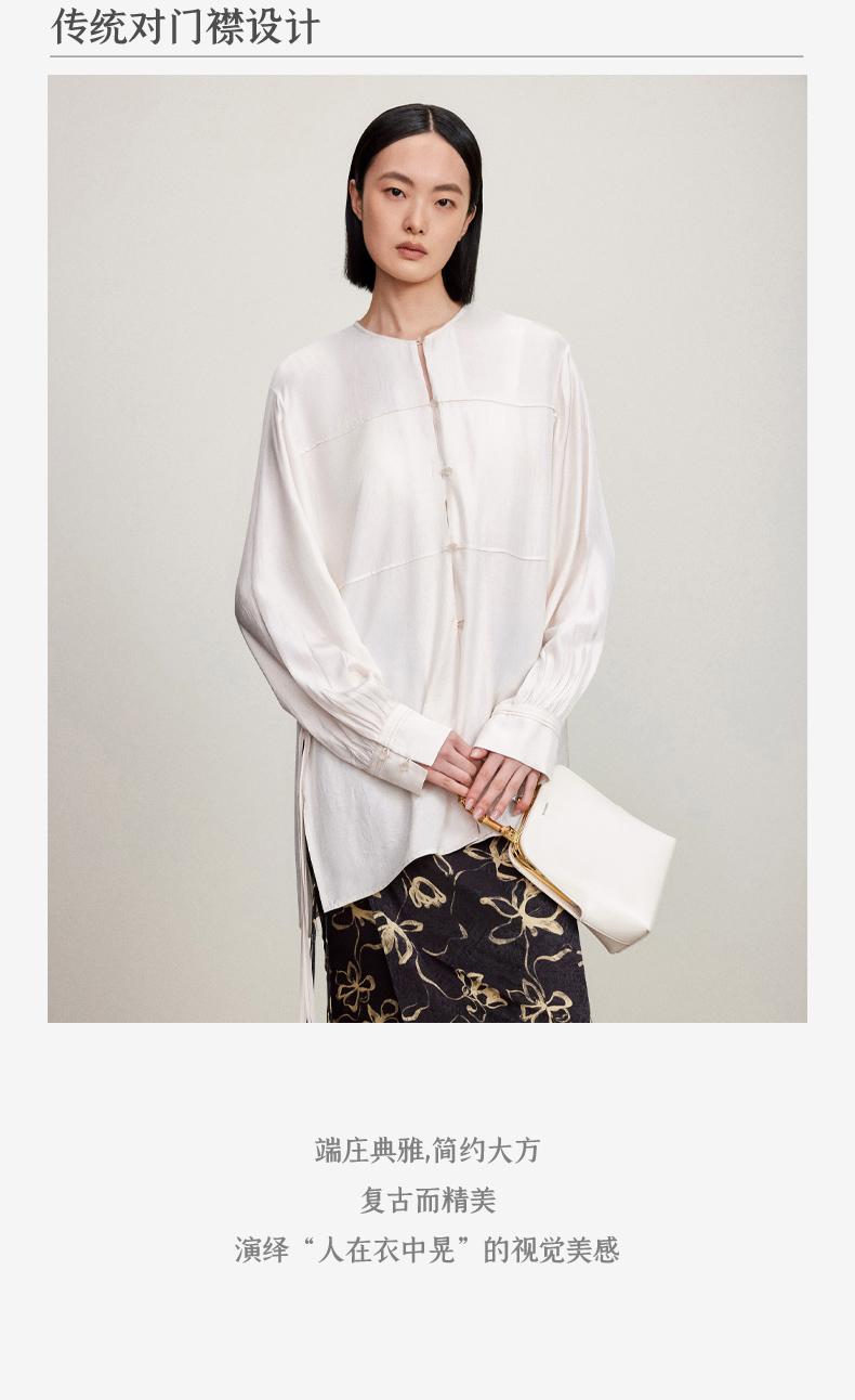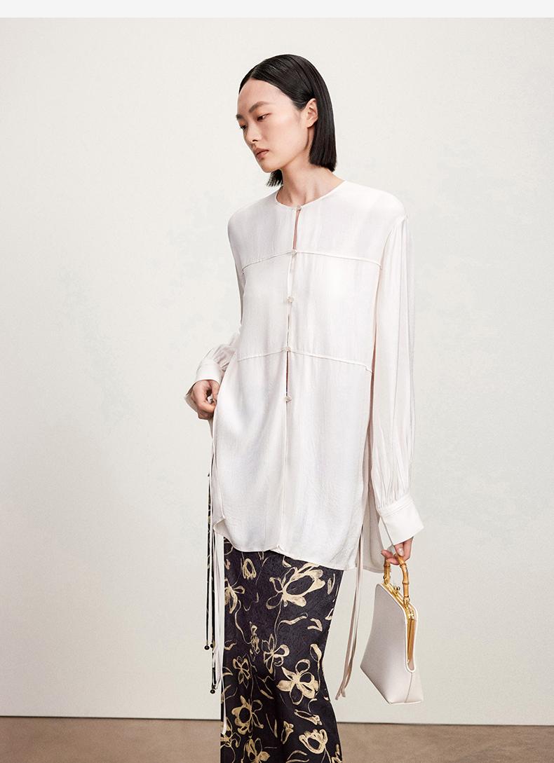 西嘉C+IMPRESS/西嘉醋酸圆领东方新中式白衬衫女夏系带设计感国风上衣CS2402022