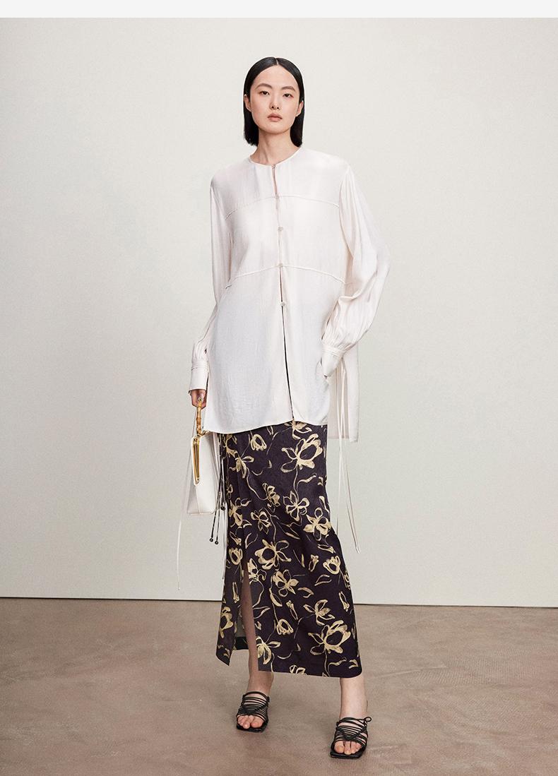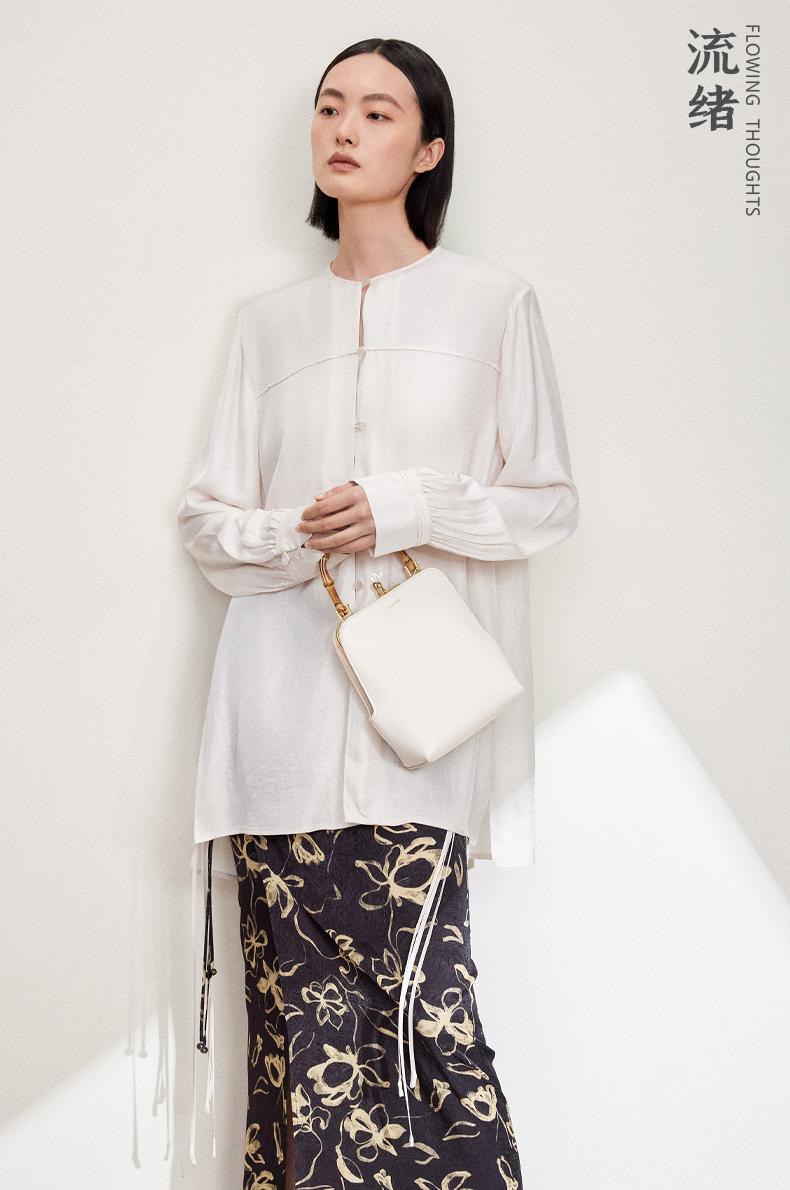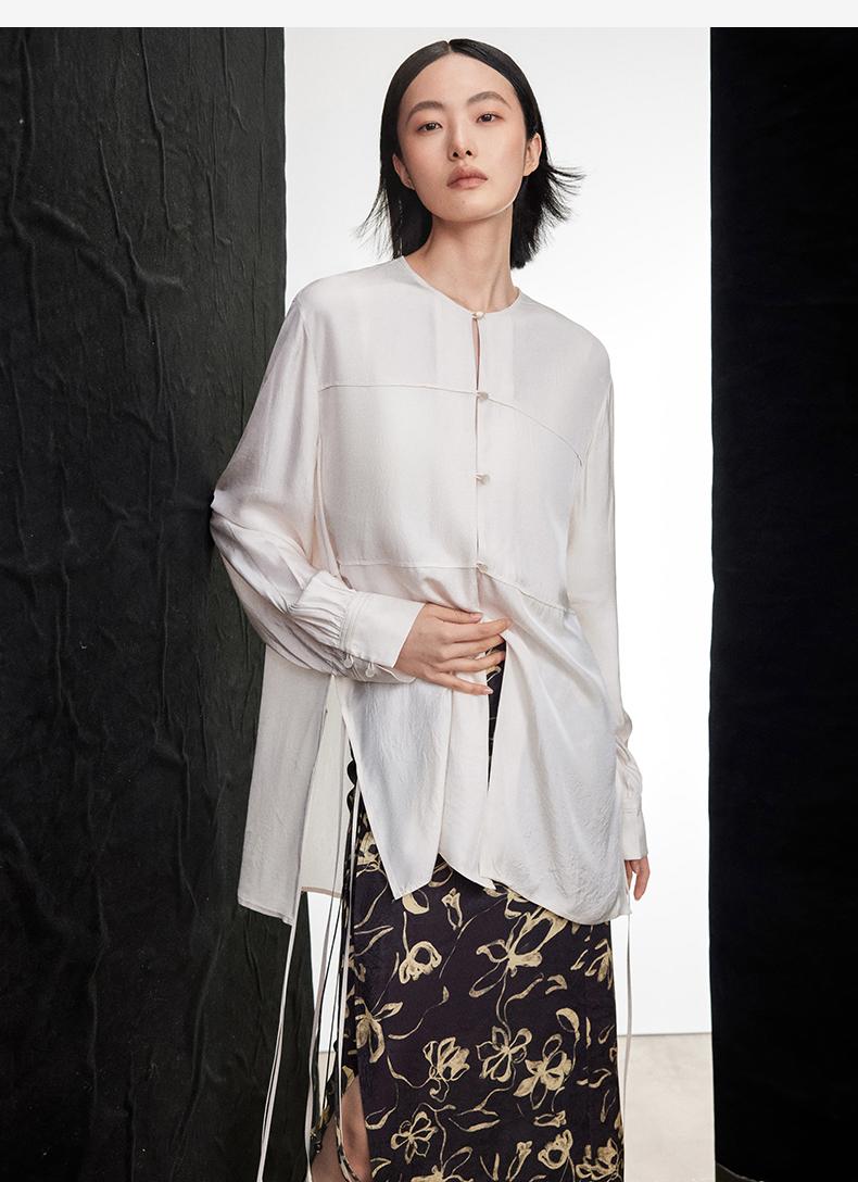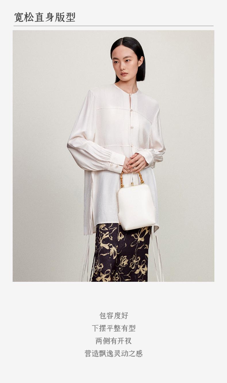 西嘉C+IMPRESS/西嘉醋酸圆领东方新中式白衬衫女夏系带设计感国风上衣CS2402022
