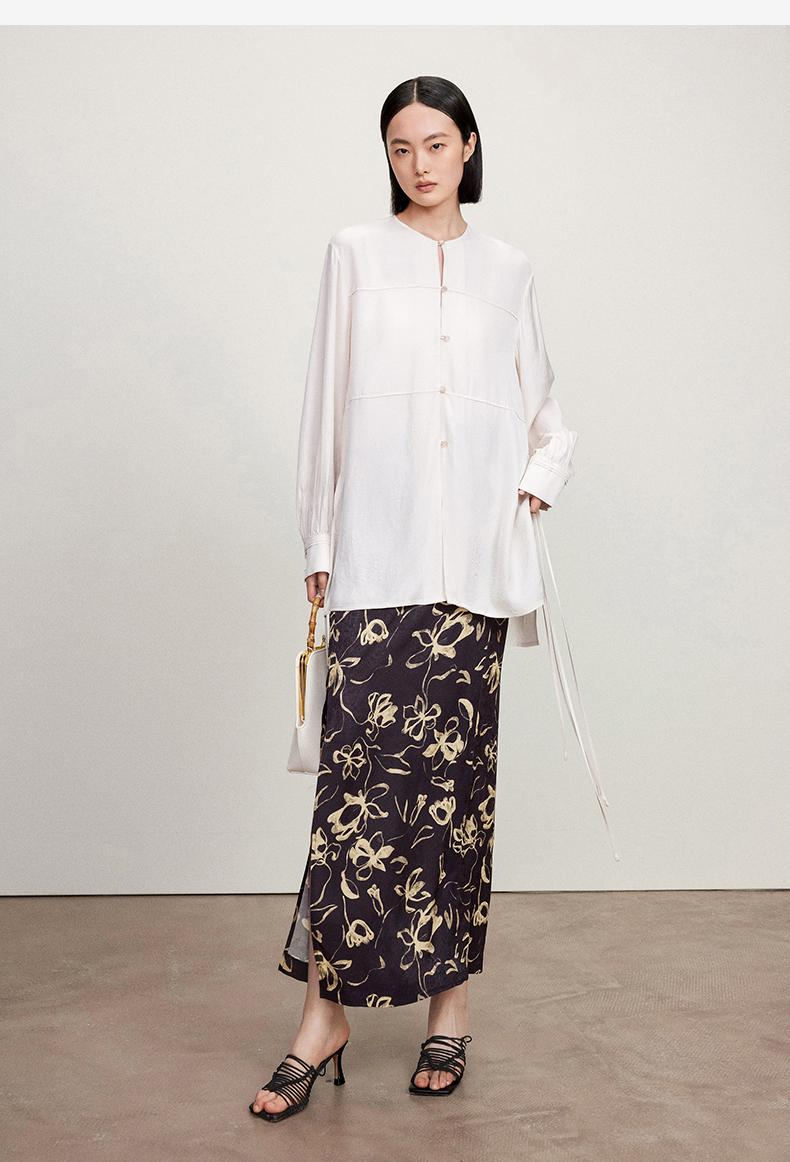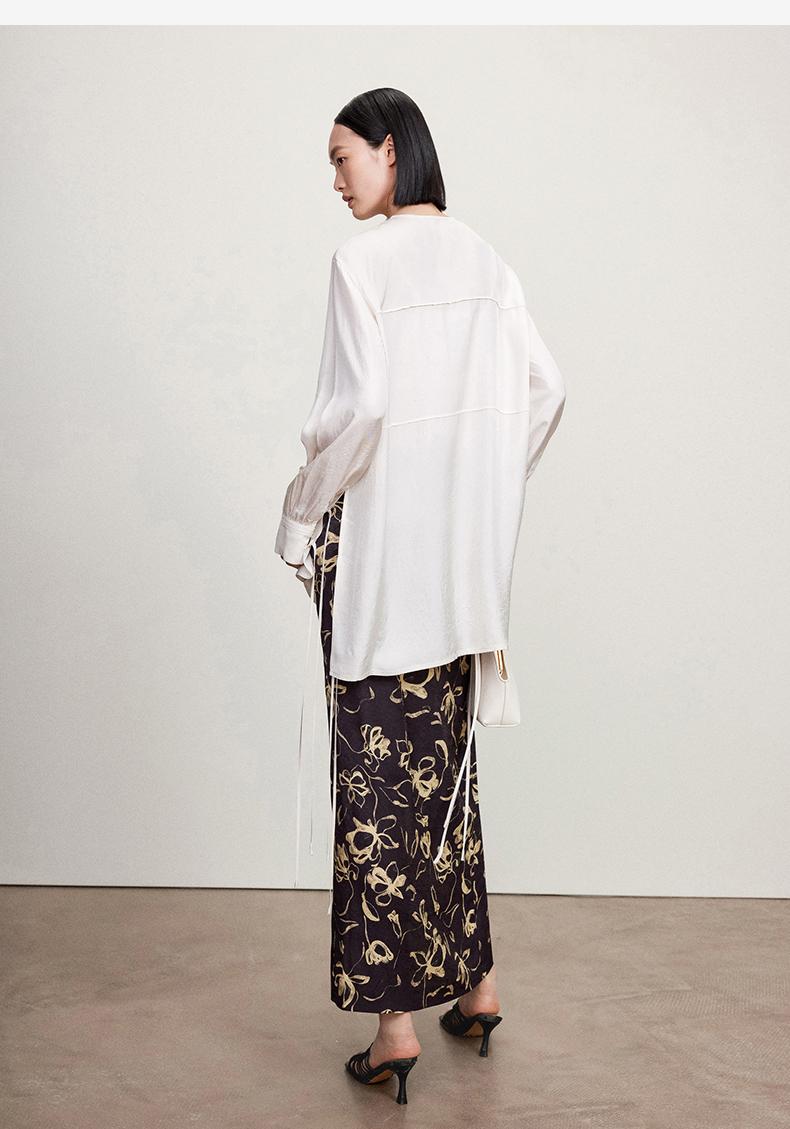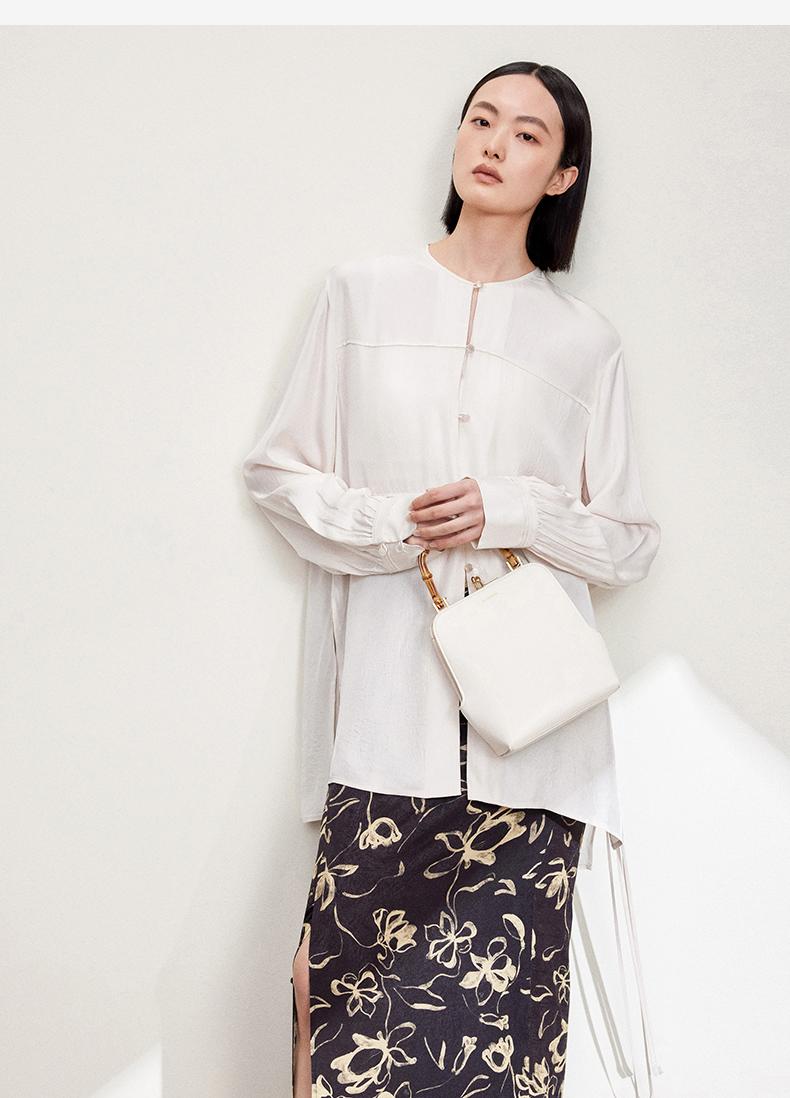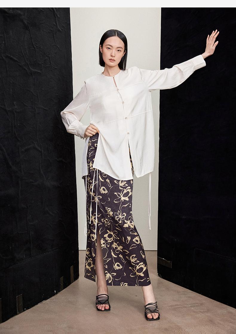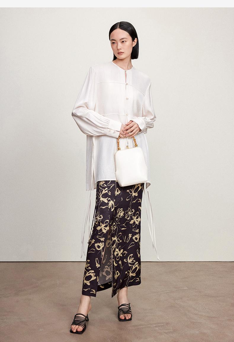 西嘉C+IMPRESS/西嘉醋酸圆领东方新中式白衬衫女夏系带设计感国风上衣CS2402022