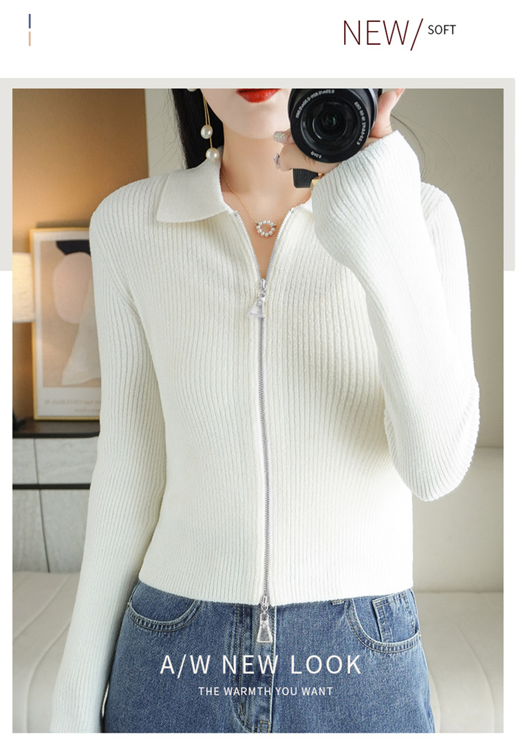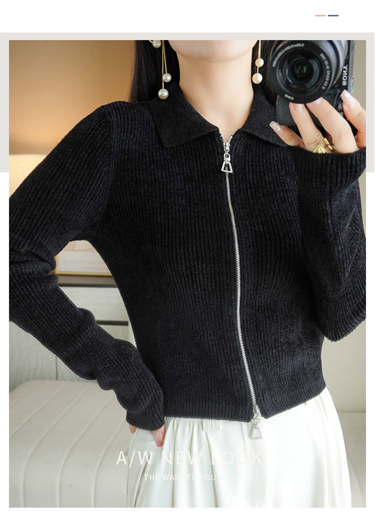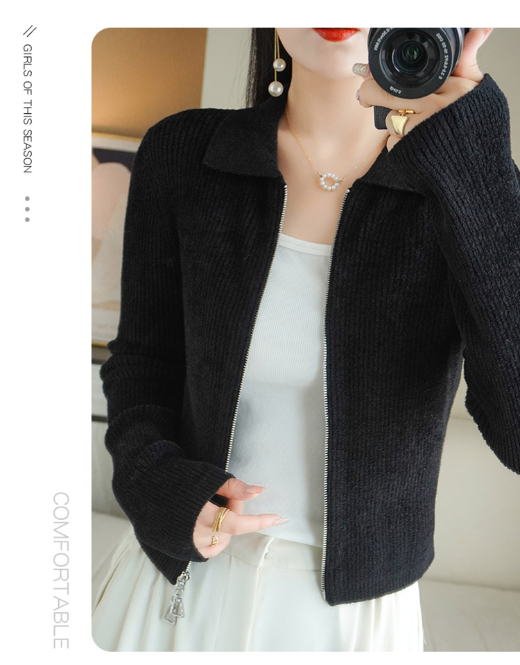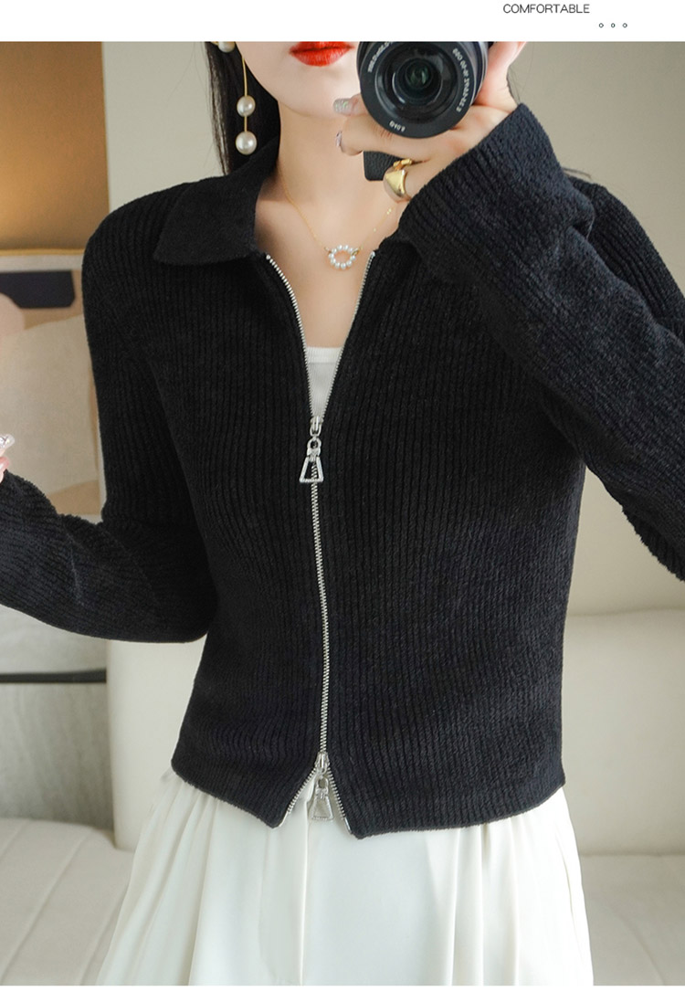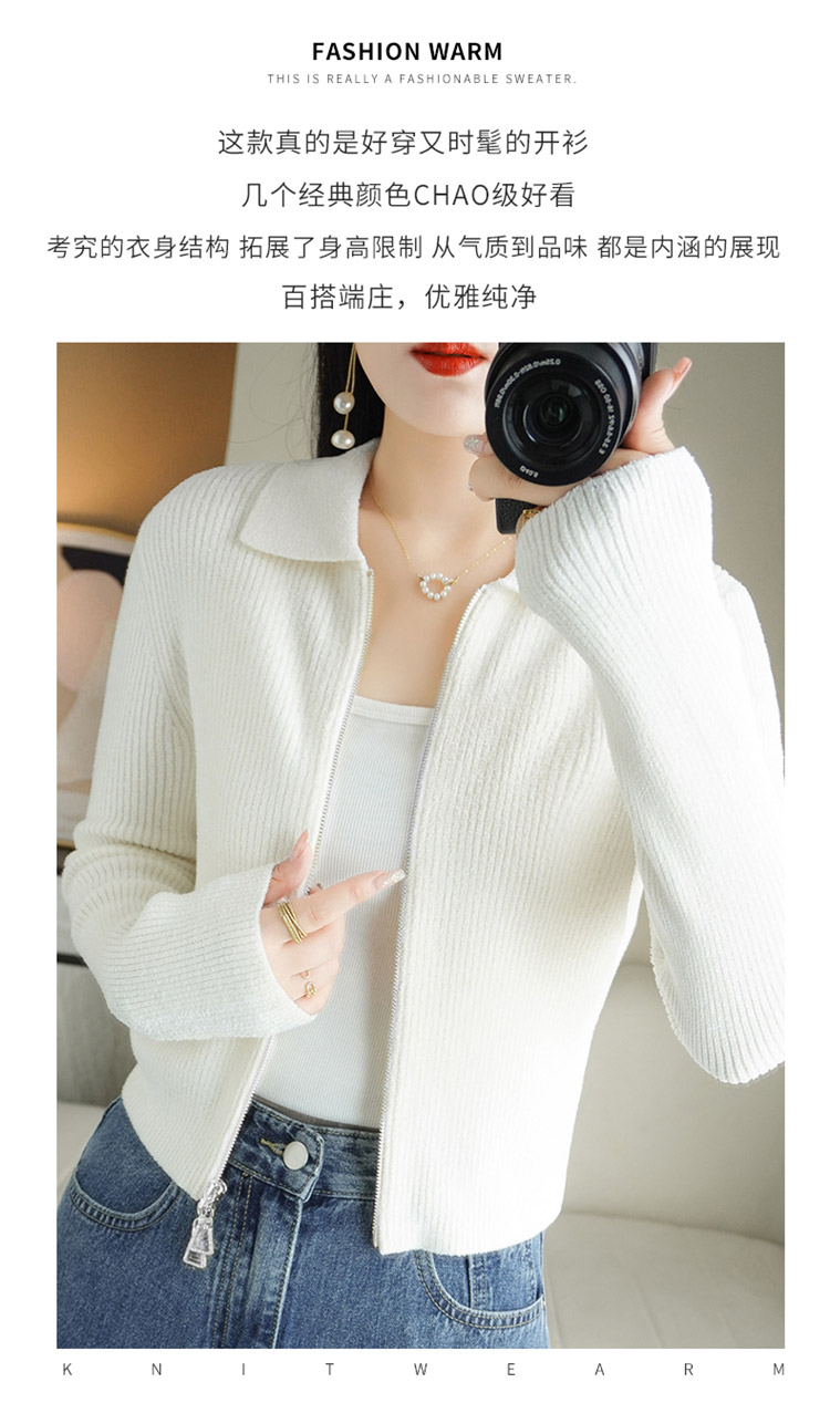 【三石专属】SimpleRetro 冬日咏叹调 复古绵羊毛彩点纱翻领针织衫女短款毛衣