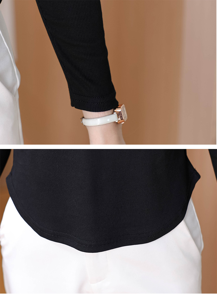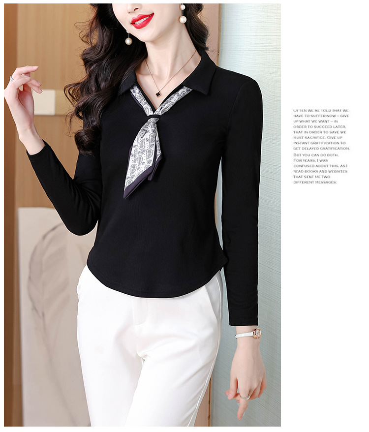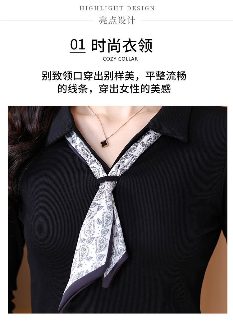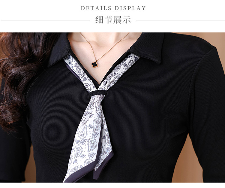 KQL 355h8307法式气质配丝巾长袖T恤修身显瘦洋气上衣