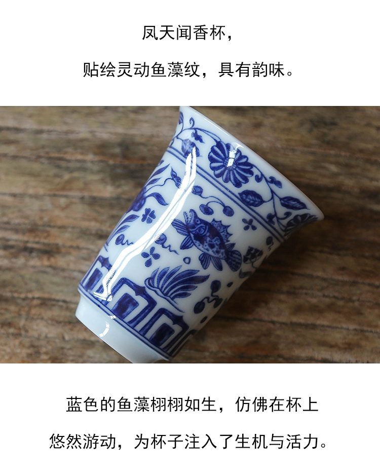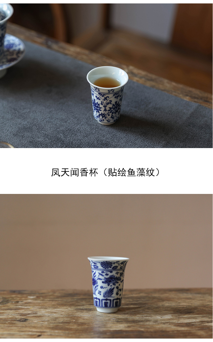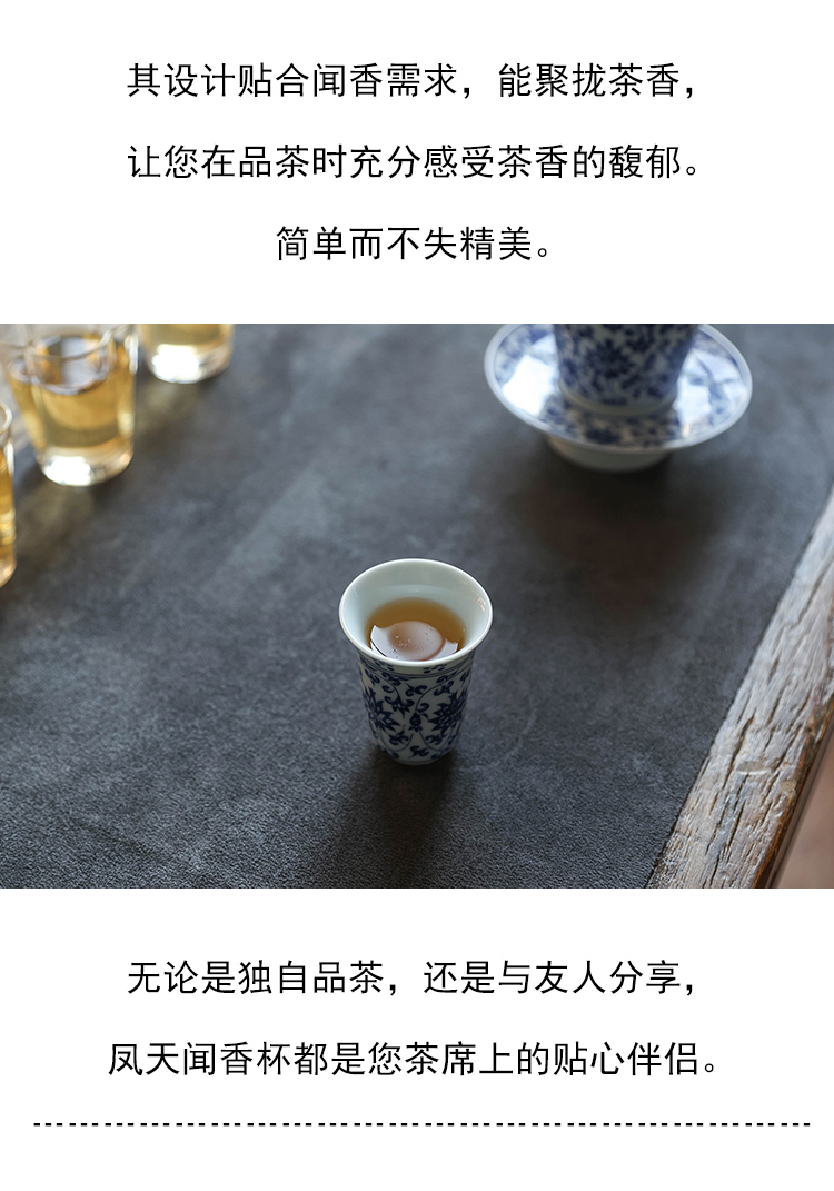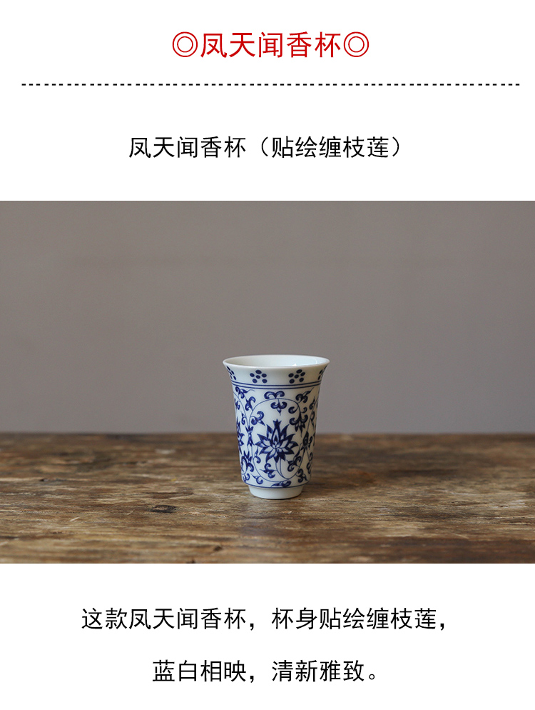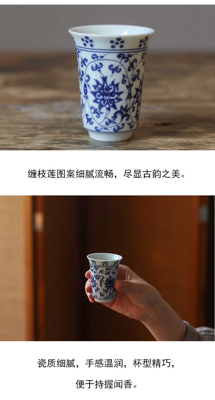 茶香记 凤天闻香杯贴绘缠枝莲40ml景德镇陶瓷茶杯主人杯青花茶具
