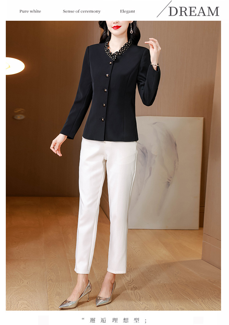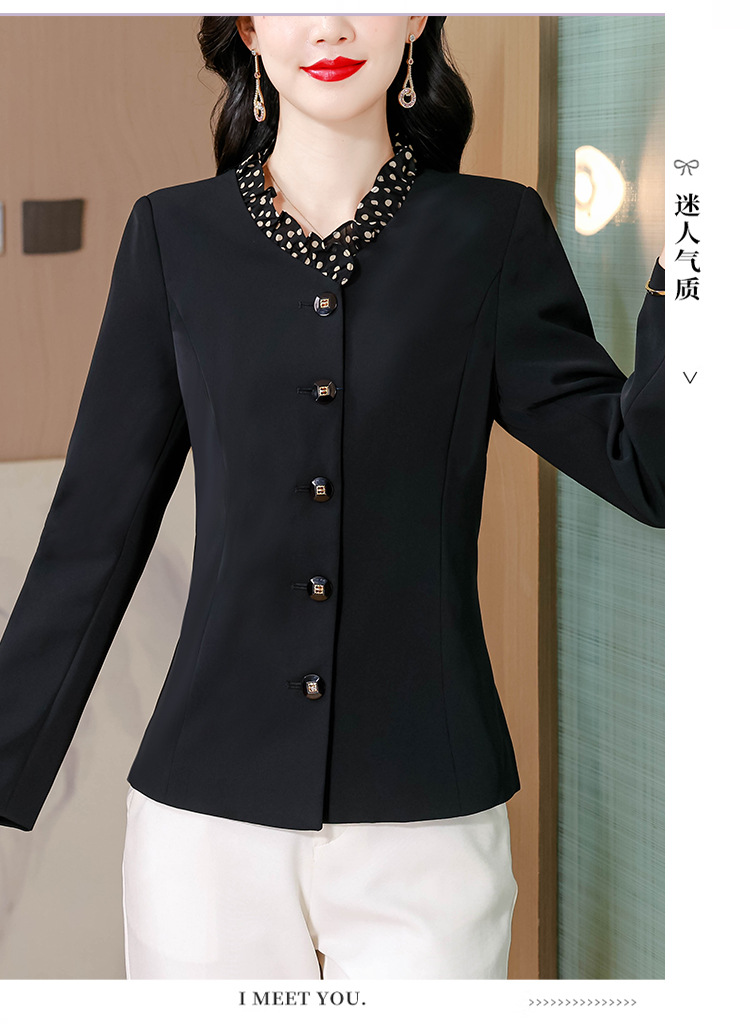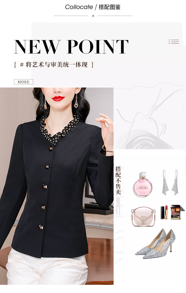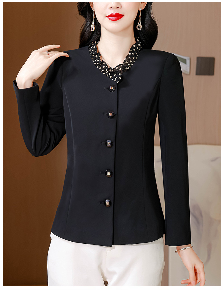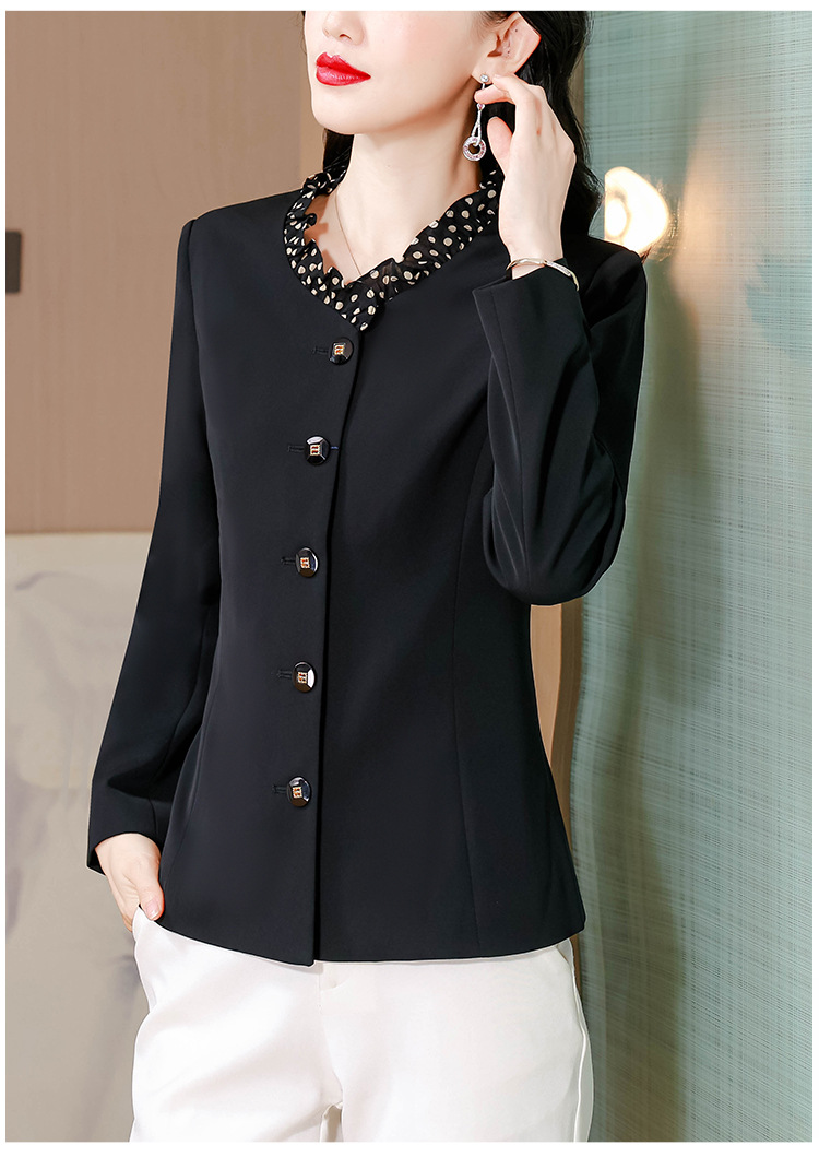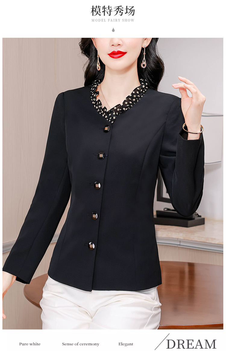 KQLA83N31882025年小众设计感木耳边鸡心领西装女春秋法式优雅修身短外套