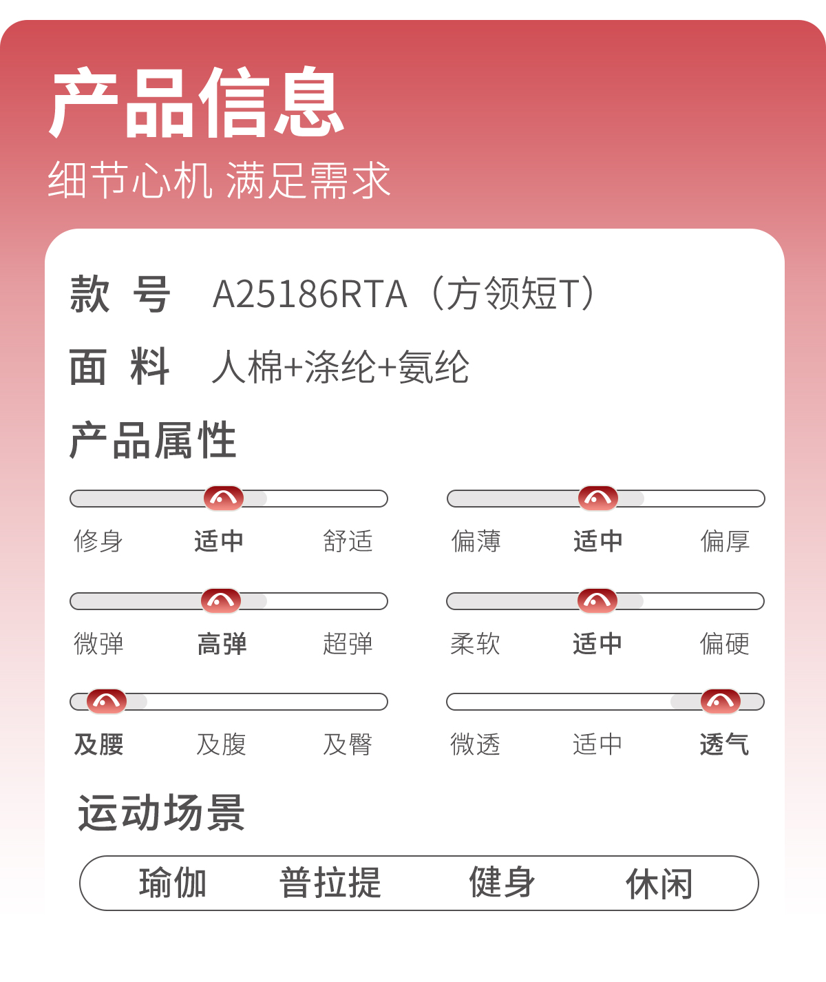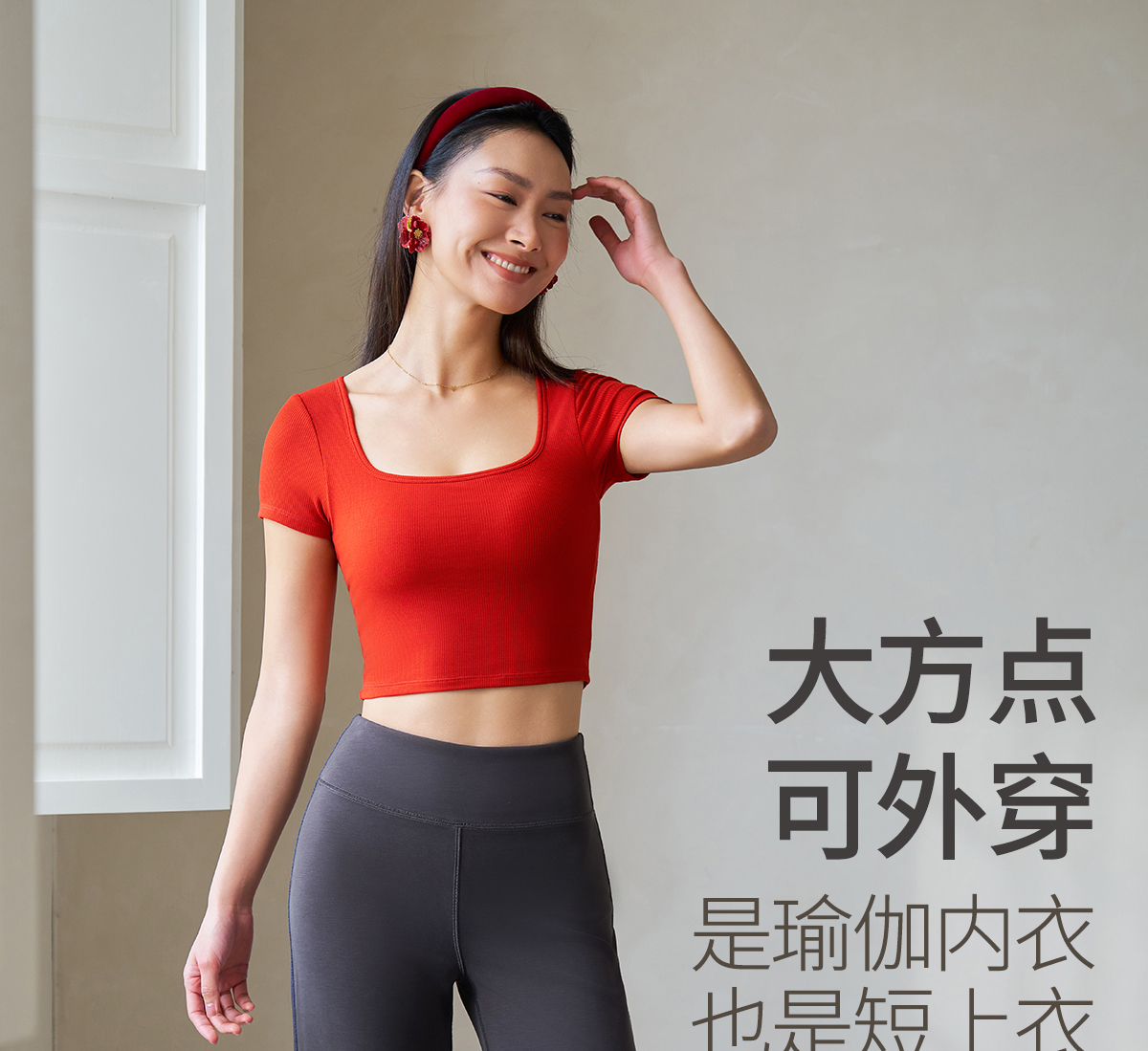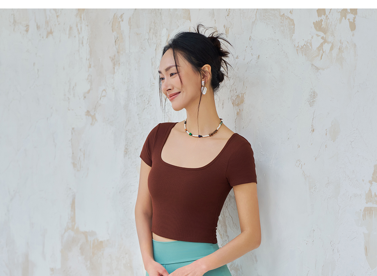 春夏新款专业瑜伽服女短袖品牌健身服修身显瘦普拉提运动上衣方领A25186RTA