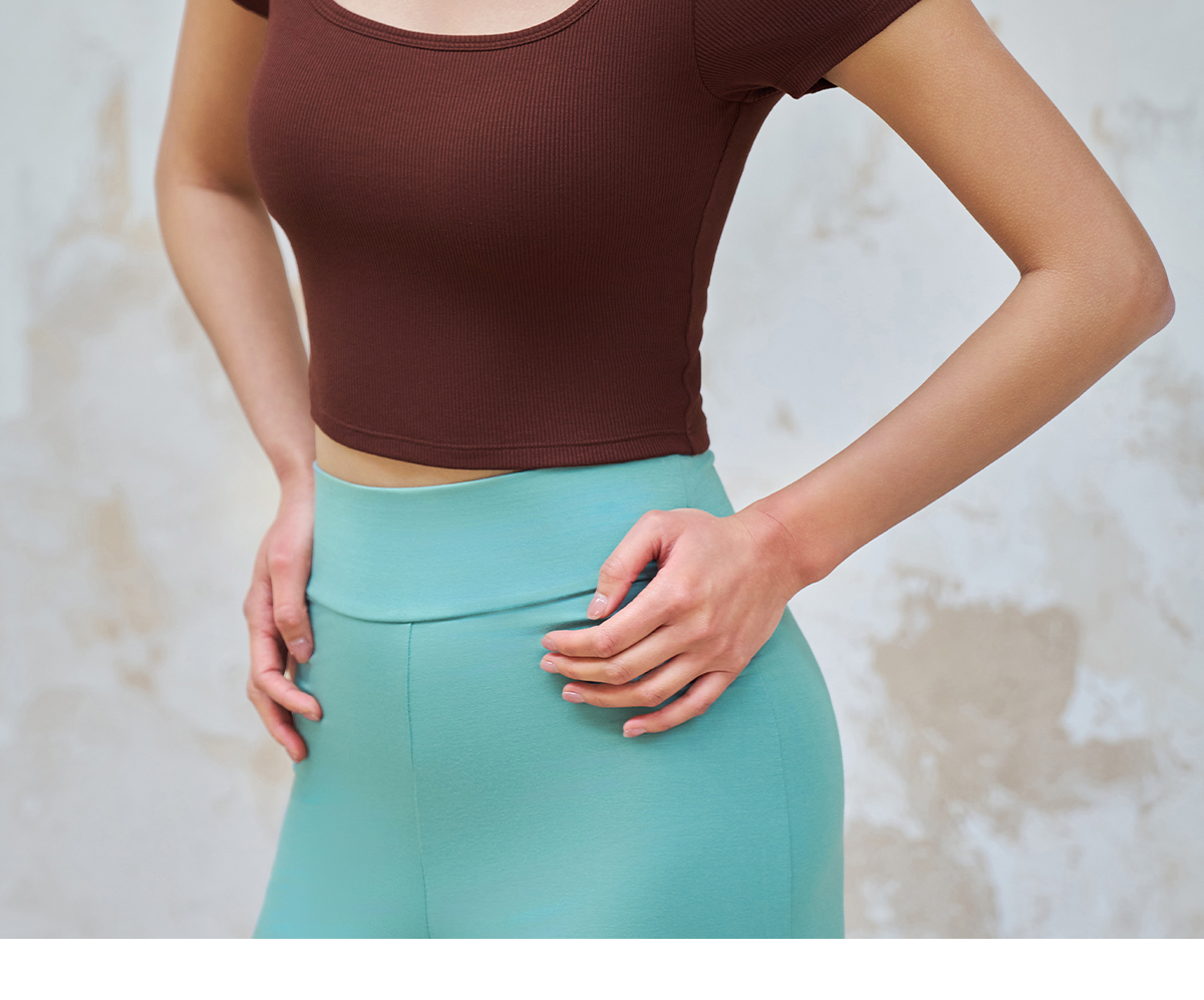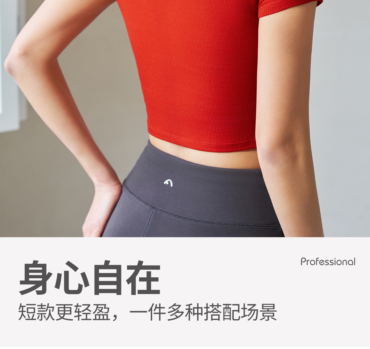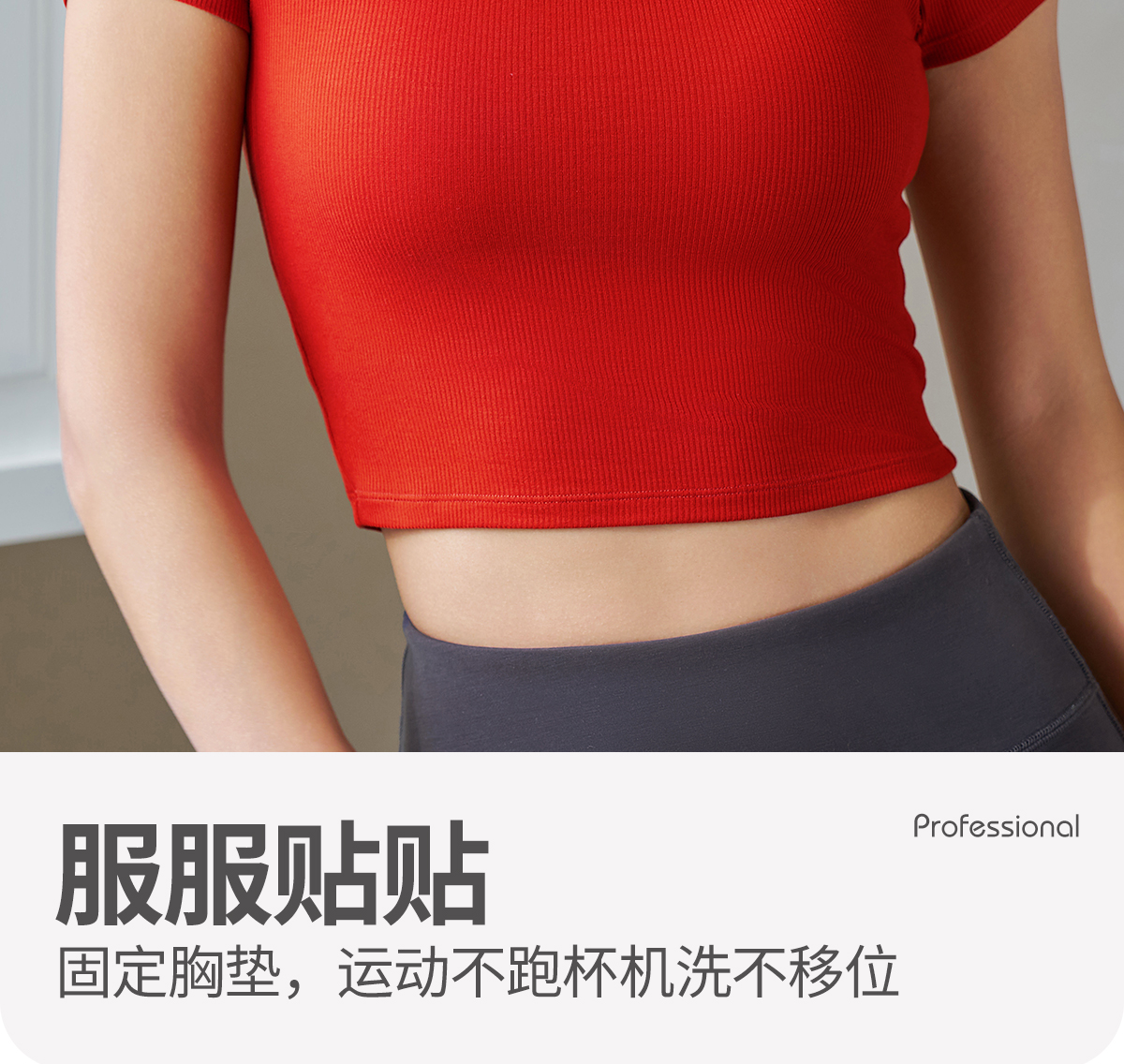春夏新款专业瑜伽服女短袖品牌健身服修身显瘦普拉提运动上衣方领A25186RTA