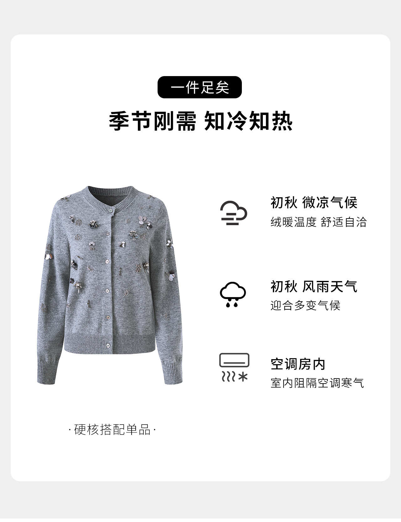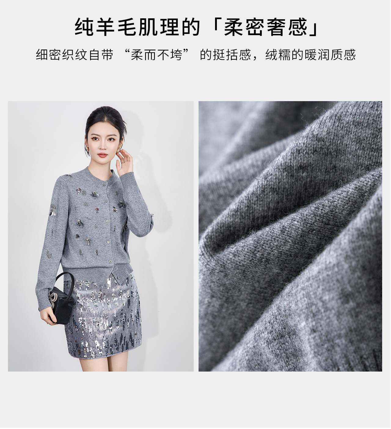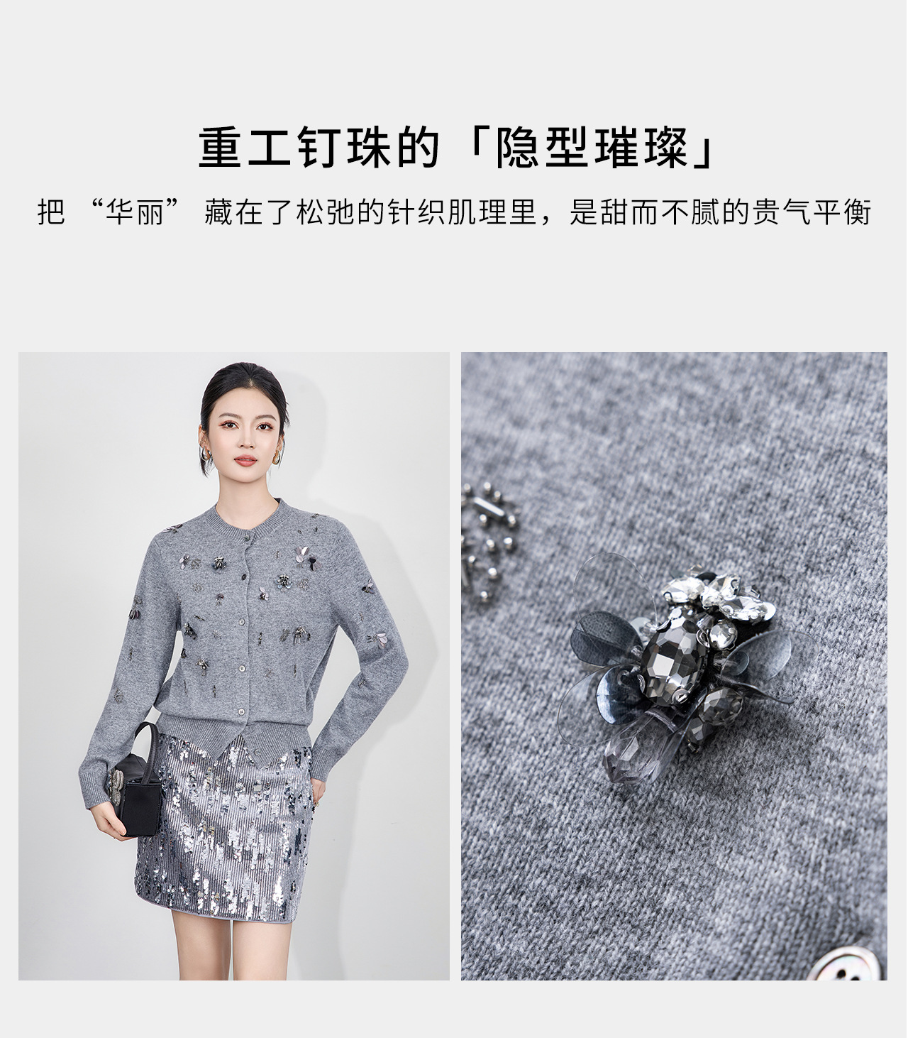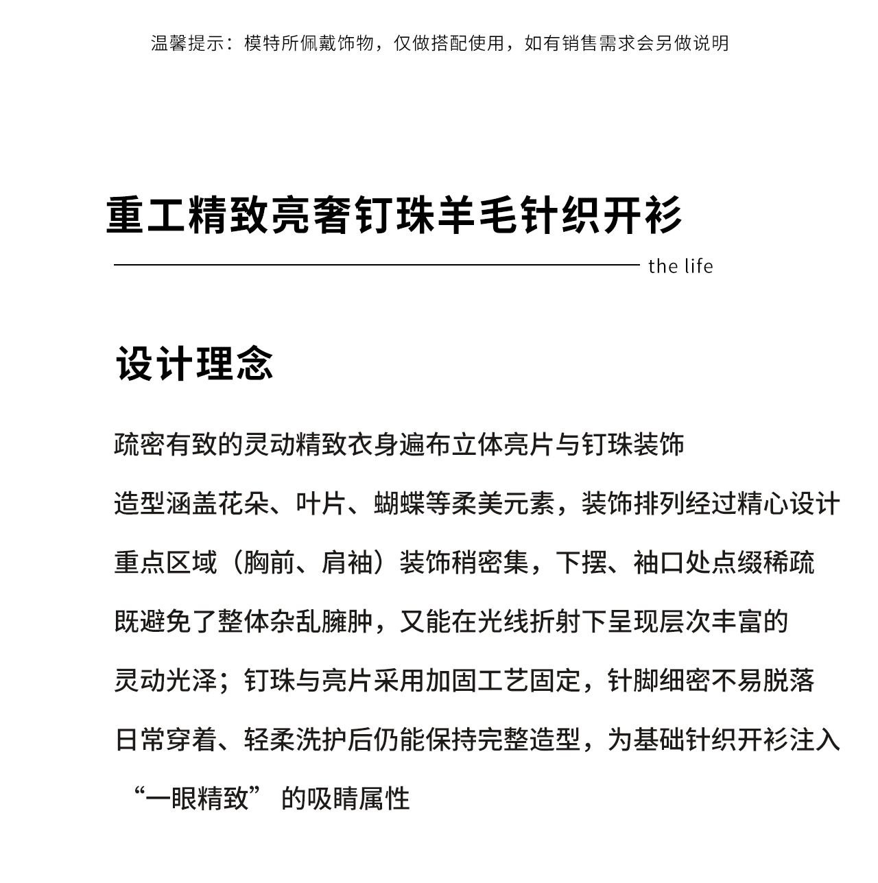 「高货wl」全新升级【铂金会员349/天猫469/差价120】(00436)洛诗琳气质纯羊毛针织开衫2025秋冬重工珠片钉钻毛衣外套