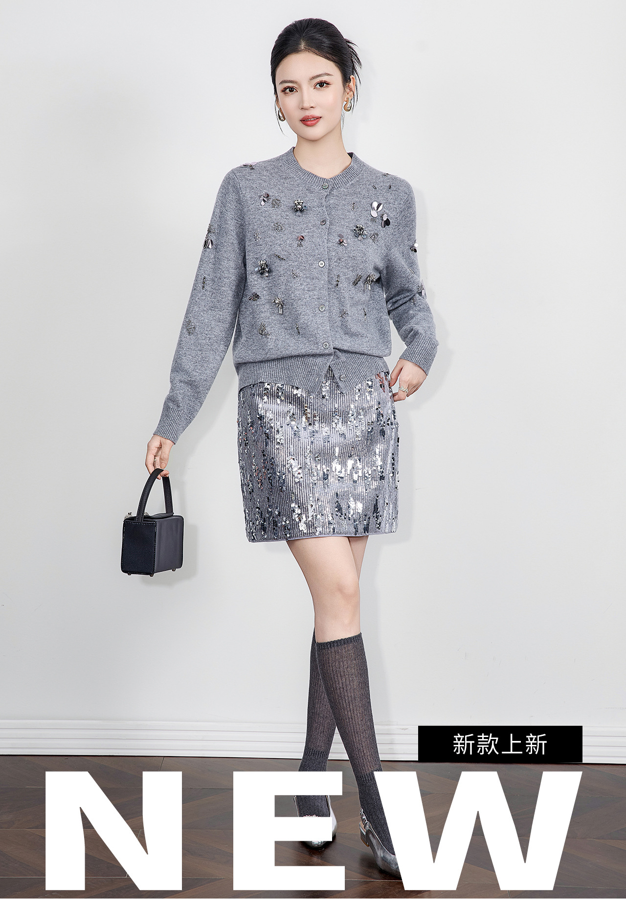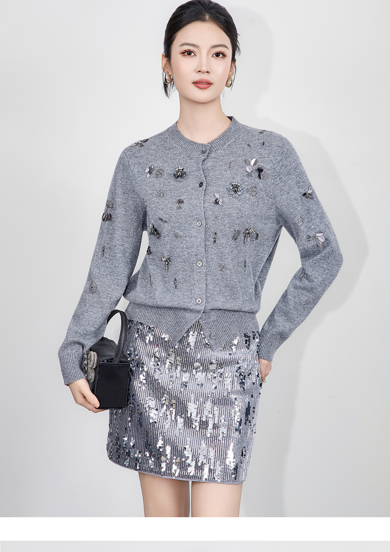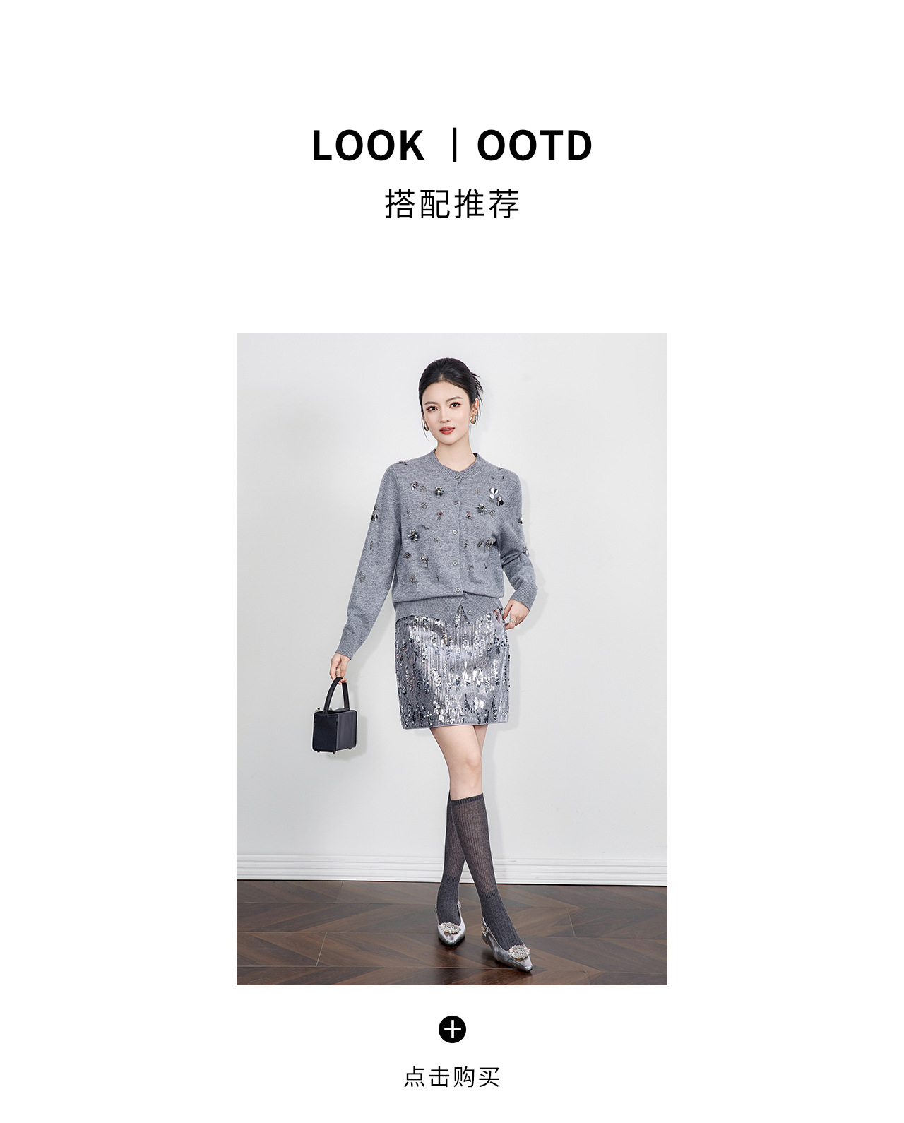 「高货wl」全新升级【铂金会员349/天猫469/差价120】(00436)洛诗琳气质纯羊毛针织开衫2025秋冬重工珠片钉钻毛衣外套
