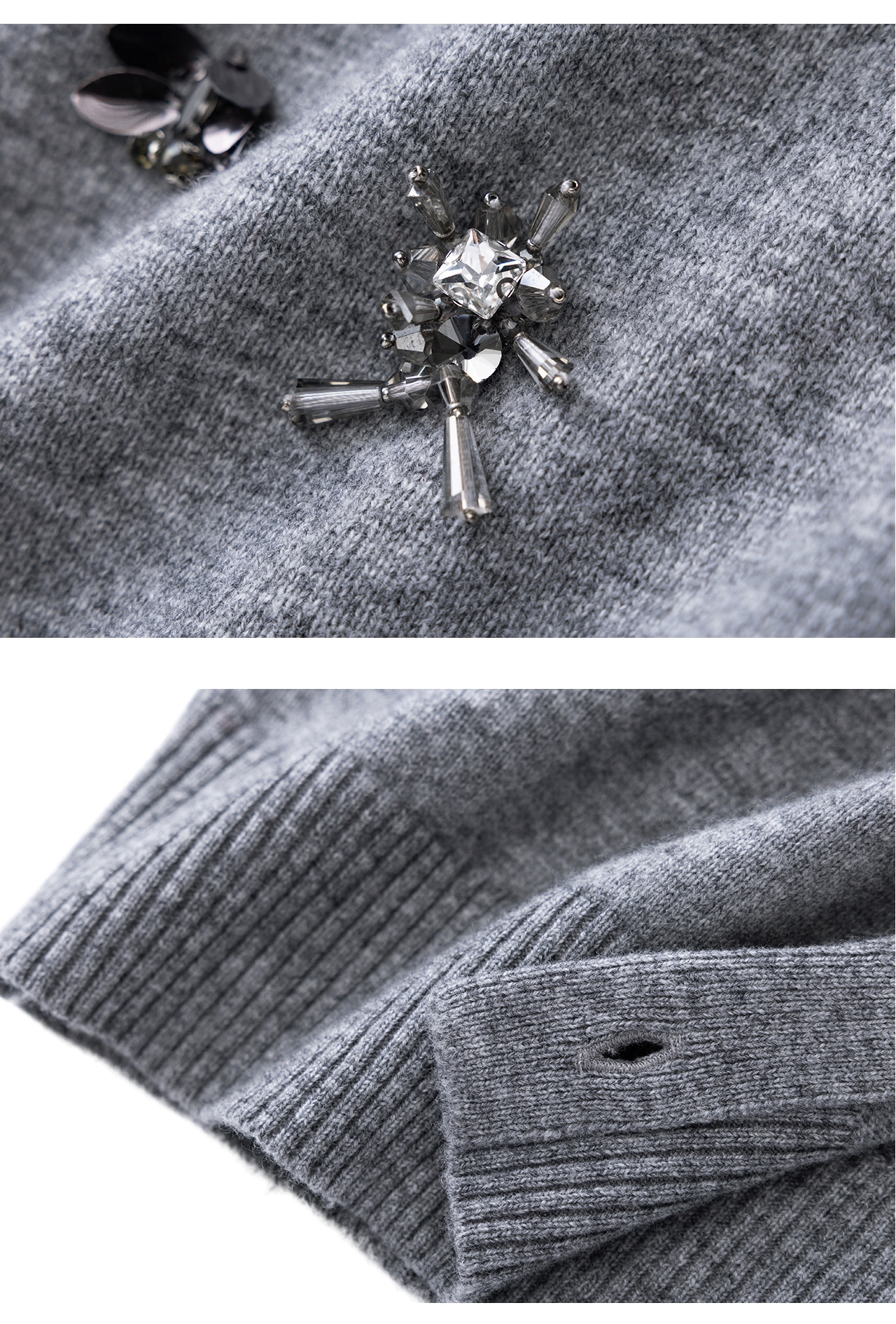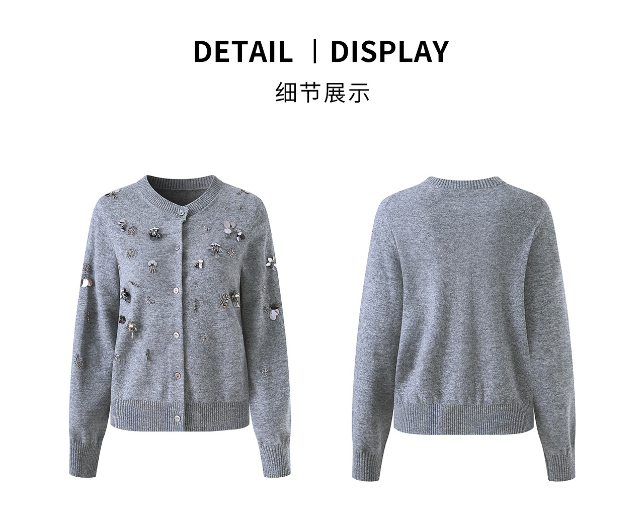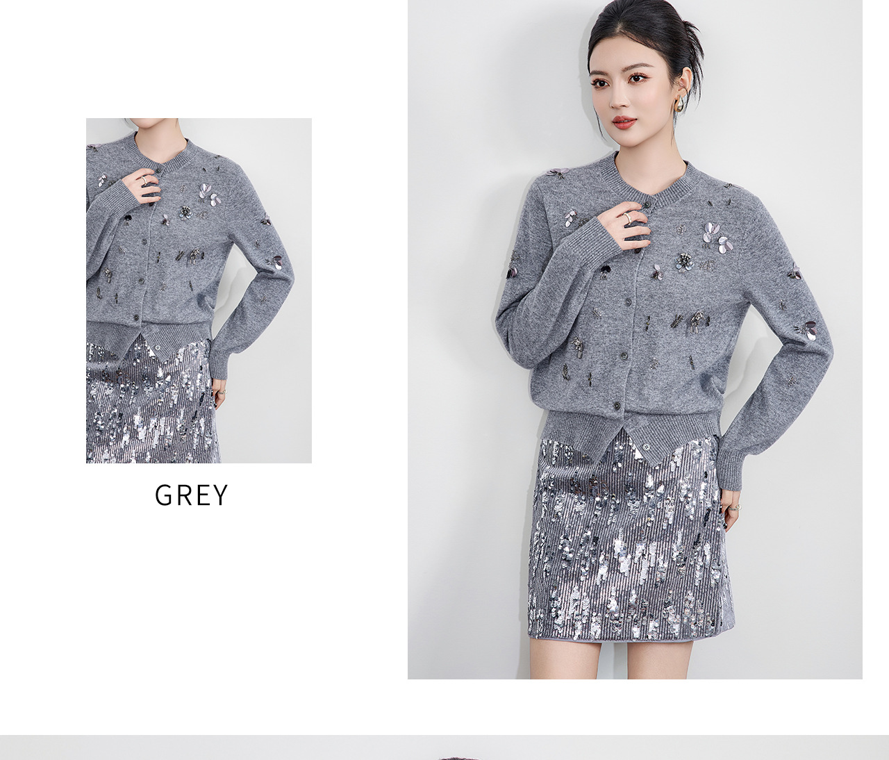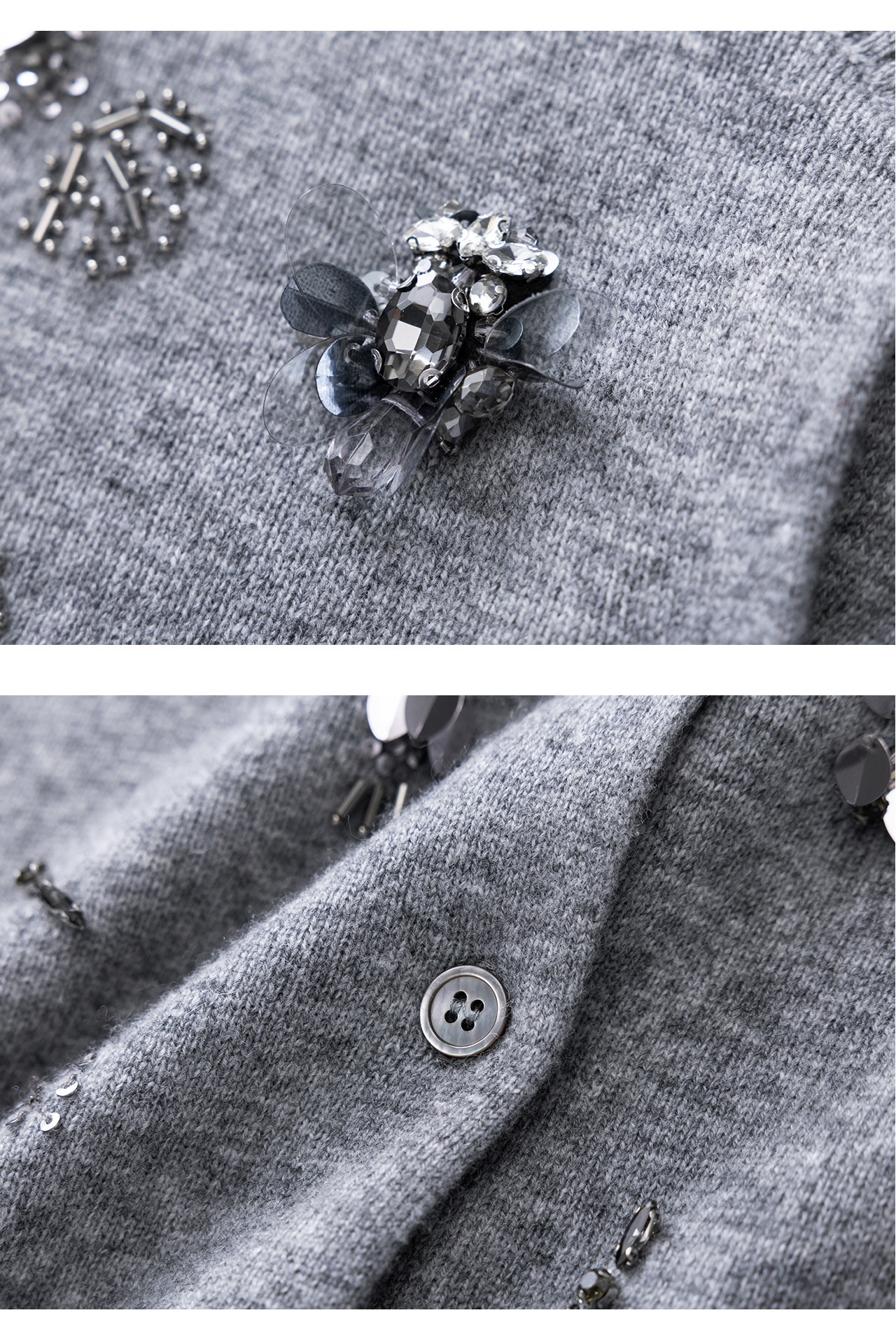 「高货wl」全新升级【铂金会员349/天猫469/差价120】(00436)洛诗琳气质纯羊毛针织开衫2025秋冬重工珠片钉钻毛衣外套