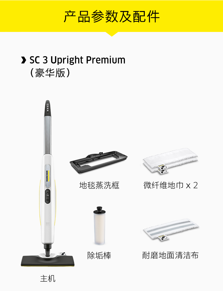 【官翻样机】 德国卡赫SC3 UP Premium多功能蒸汽拖把高温消毒拖地 15133030/15133220