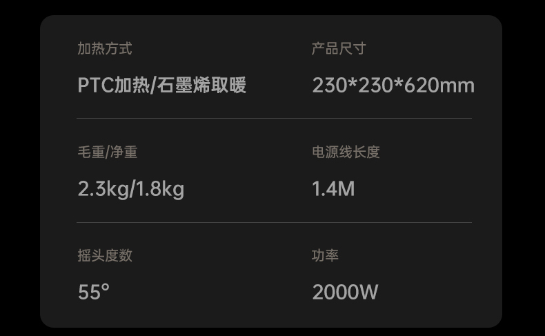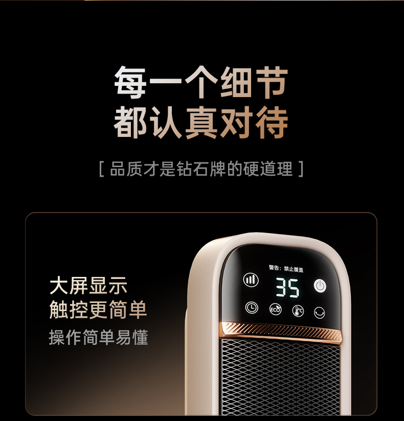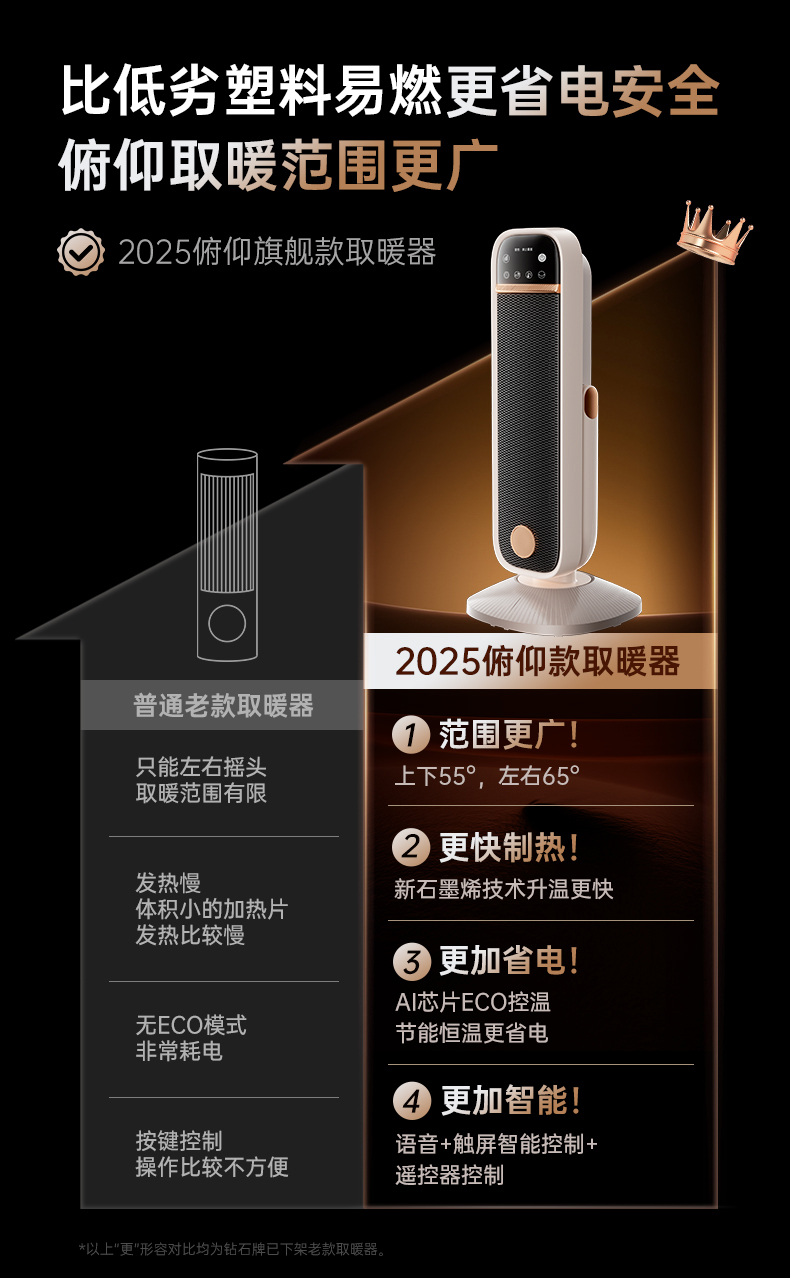 钻石牌俯仰取暖器智能语音石墨烯暖风机