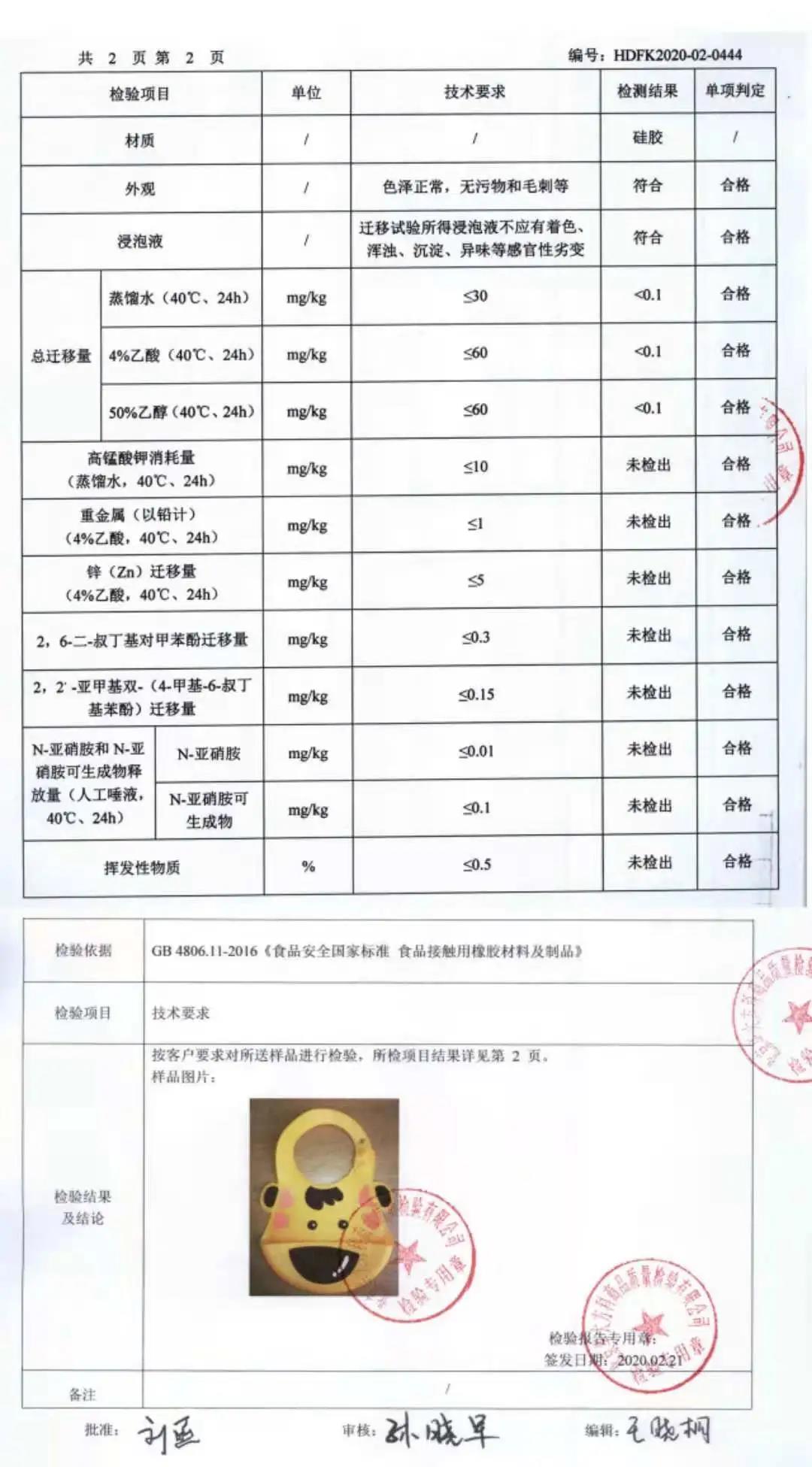 根据强制性国家标准GB 4806.11-2016 ,我们对硅胶围兜进行了相关项目的检测: