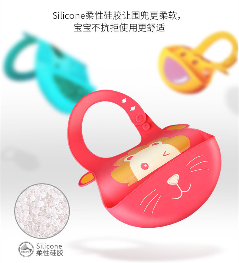 硅胶围兜 检测安全 不含任何有害物质 柔软轻便 佩戴不累脖子 三档松紧调节