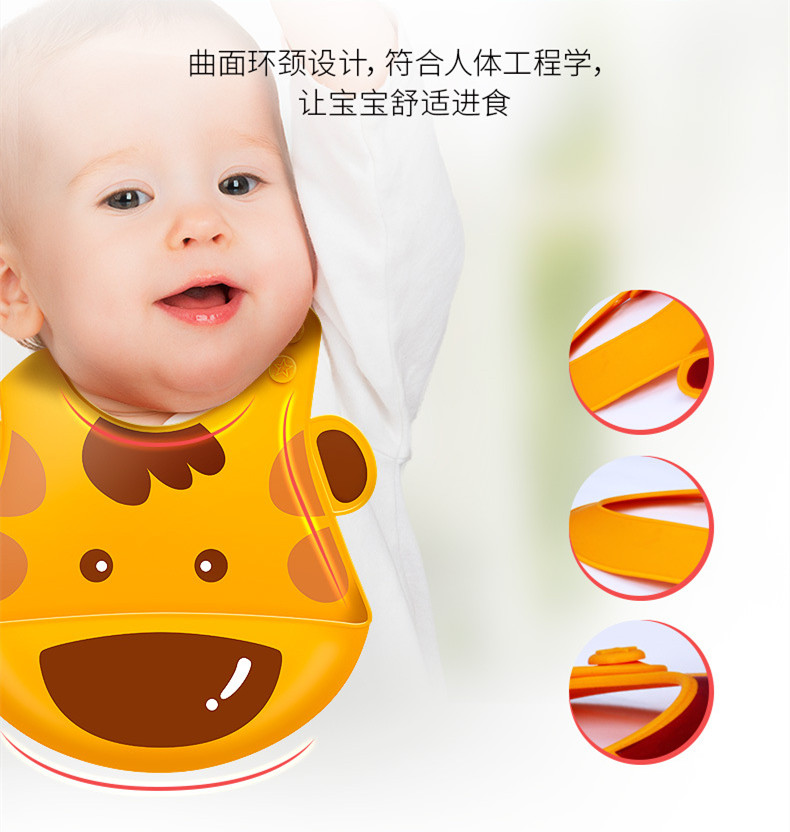 食品级硅胶材质防水防油,清洗时,一冲即净,一擦就干,可以让家长们省心不少。