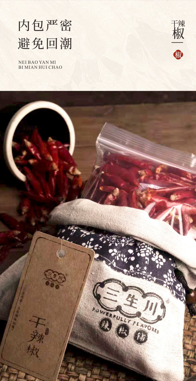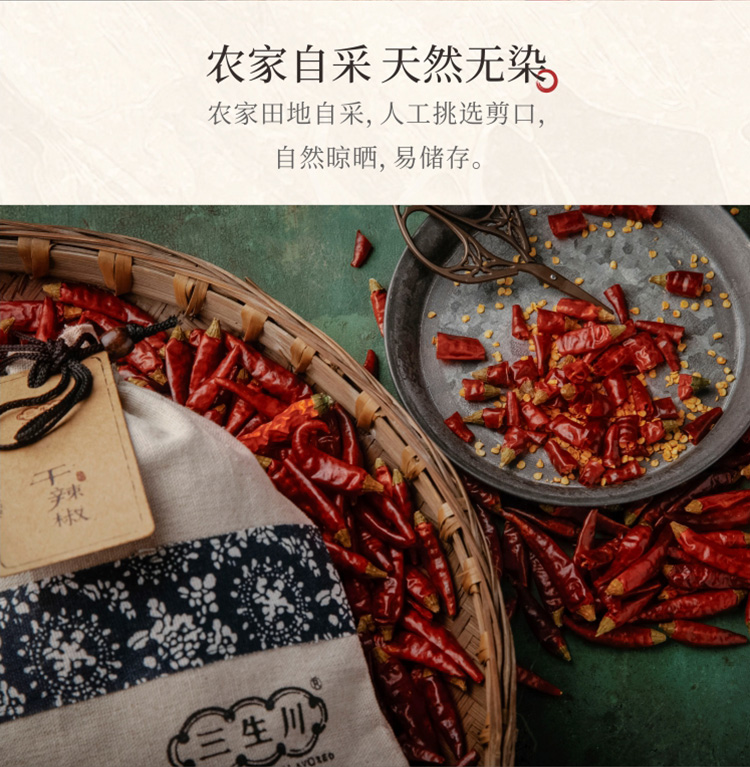 三生川辣椒铺主营四川本土辣椒系列产品,传承四川传统民俗制作工艺。让世界各地的顾客对四川,对川菜有更深度的了解。把正宗川味带回家,打造正宗四川味道。