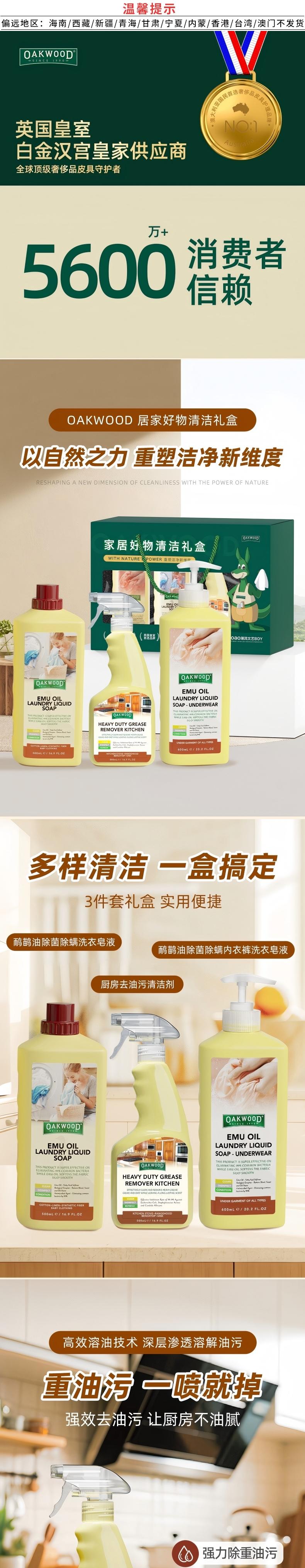 奥克伍德 家居清洁套装洗衣皂液600ml+洗衣皂液500ml+清洁剂500ml OP-25205