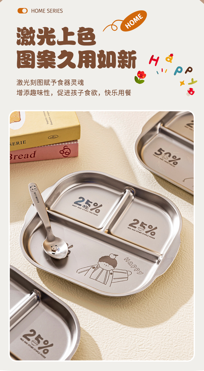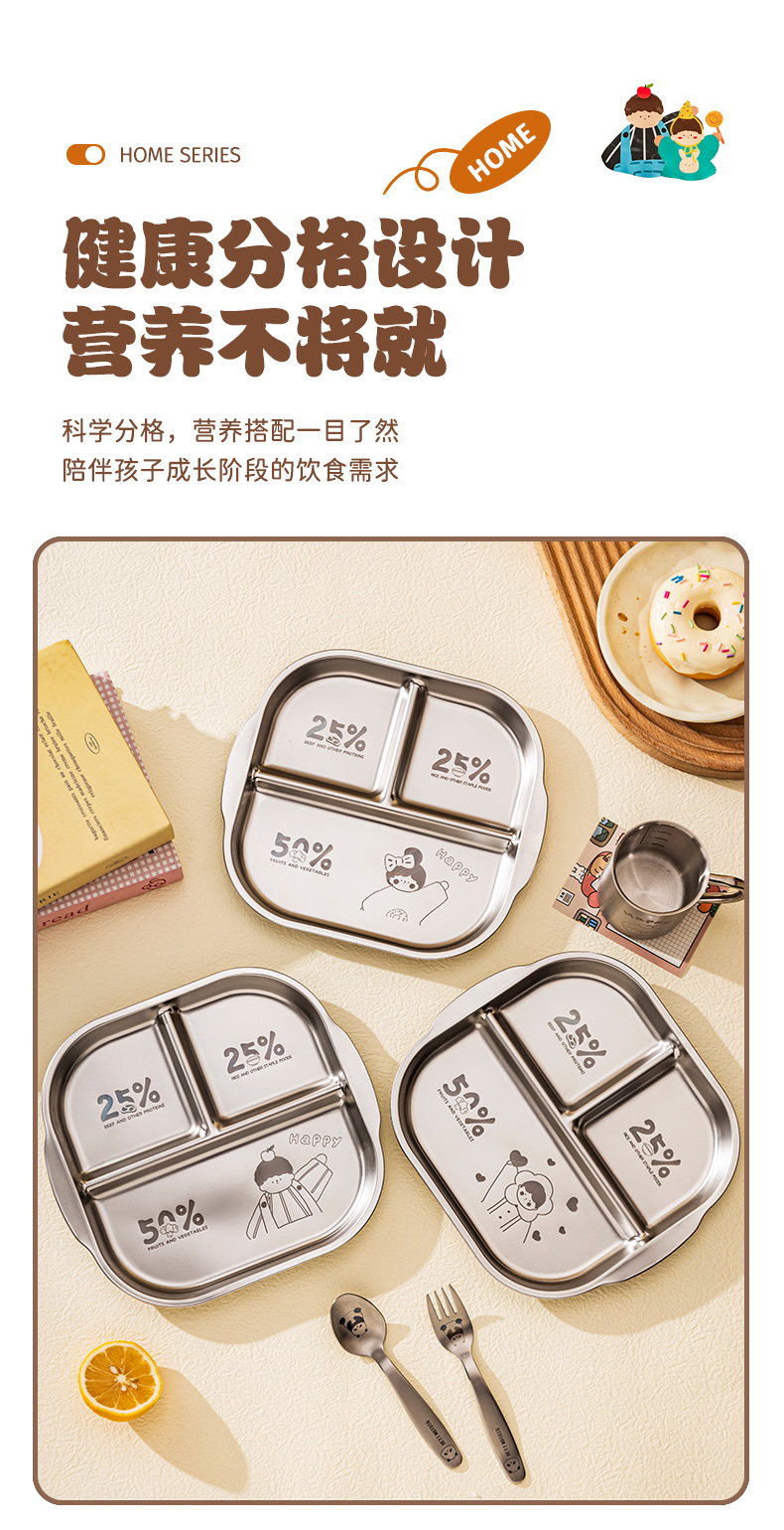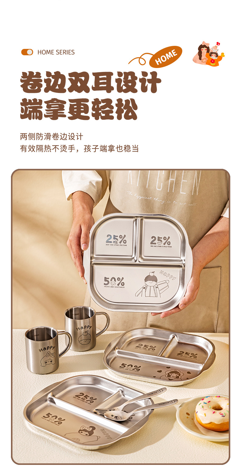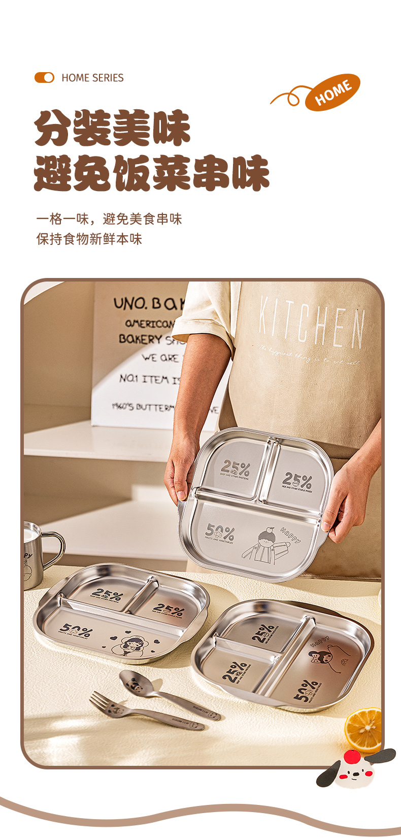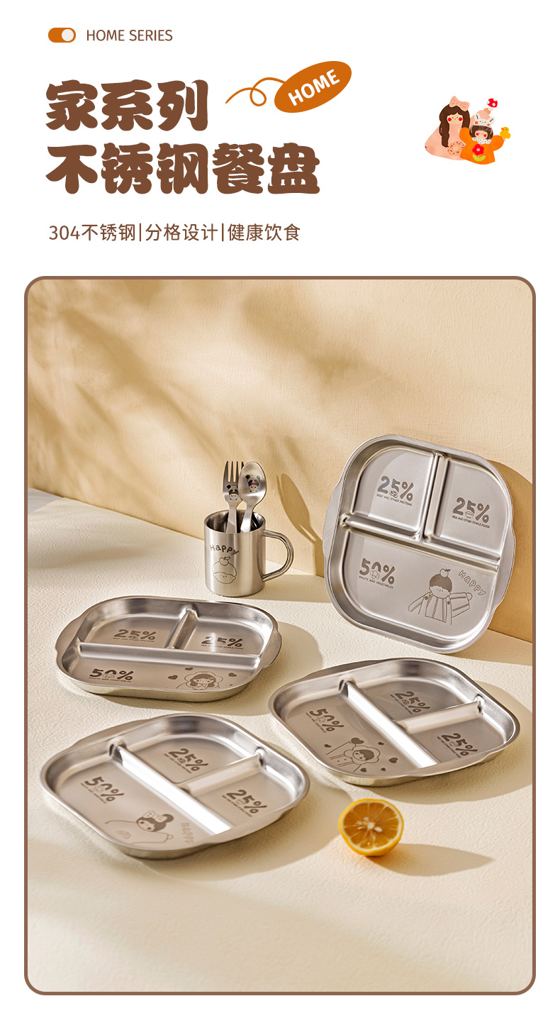 摩登主妇儿童餐盘304不锈钢宝宝分餐盘家用防摔餐具分格早餐盘子