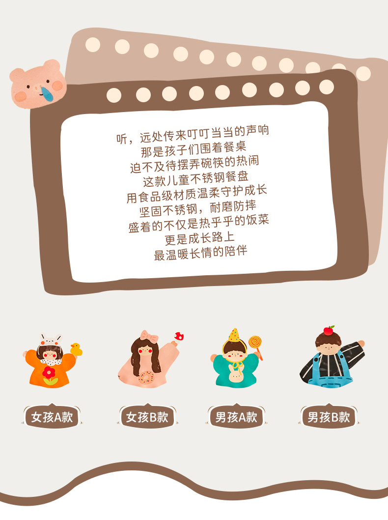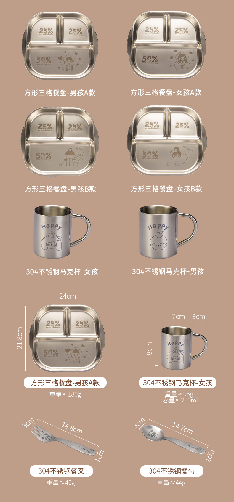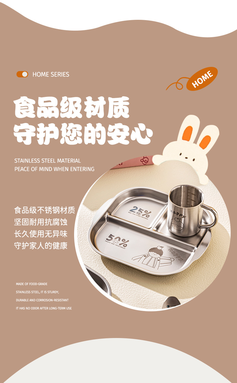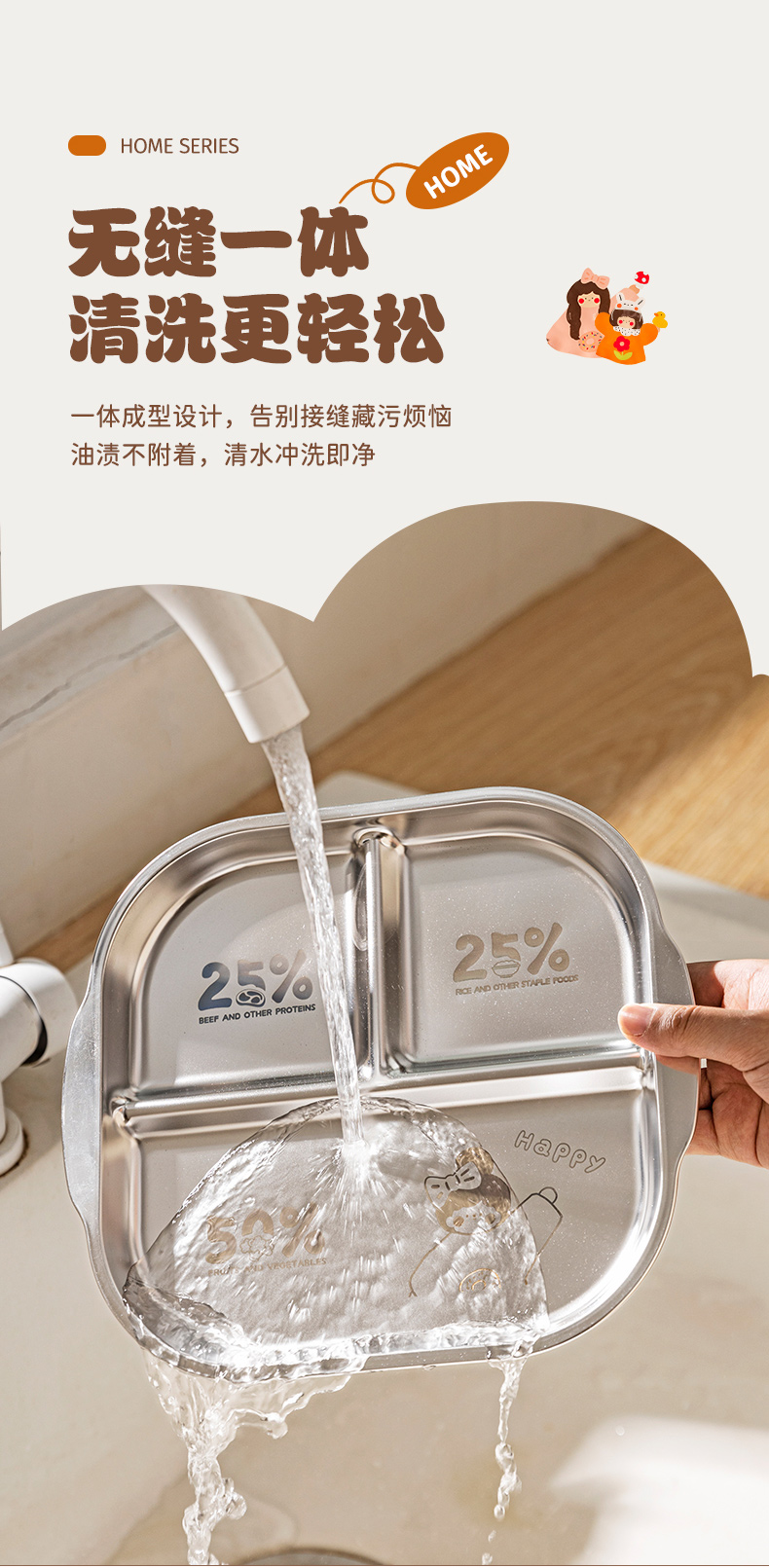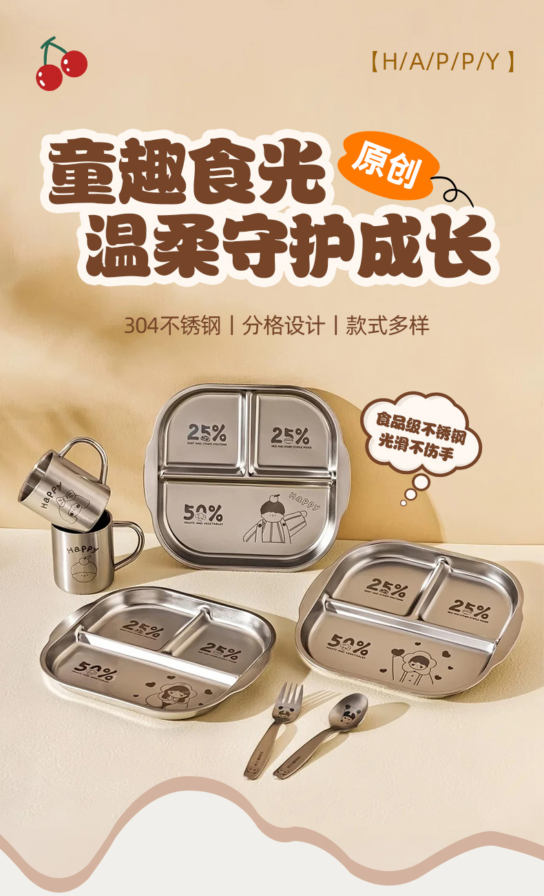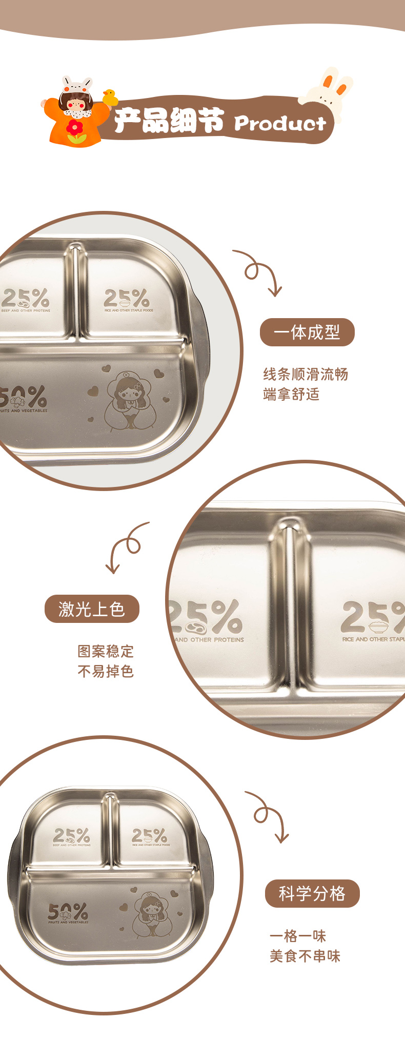摩登主妇儿童餐盘304不锈钢宝宝分餐盘家用防摔餐具分格早餐盘子