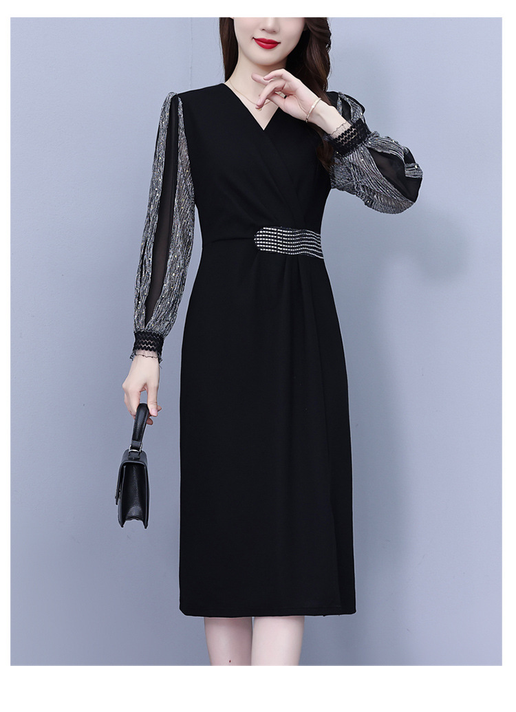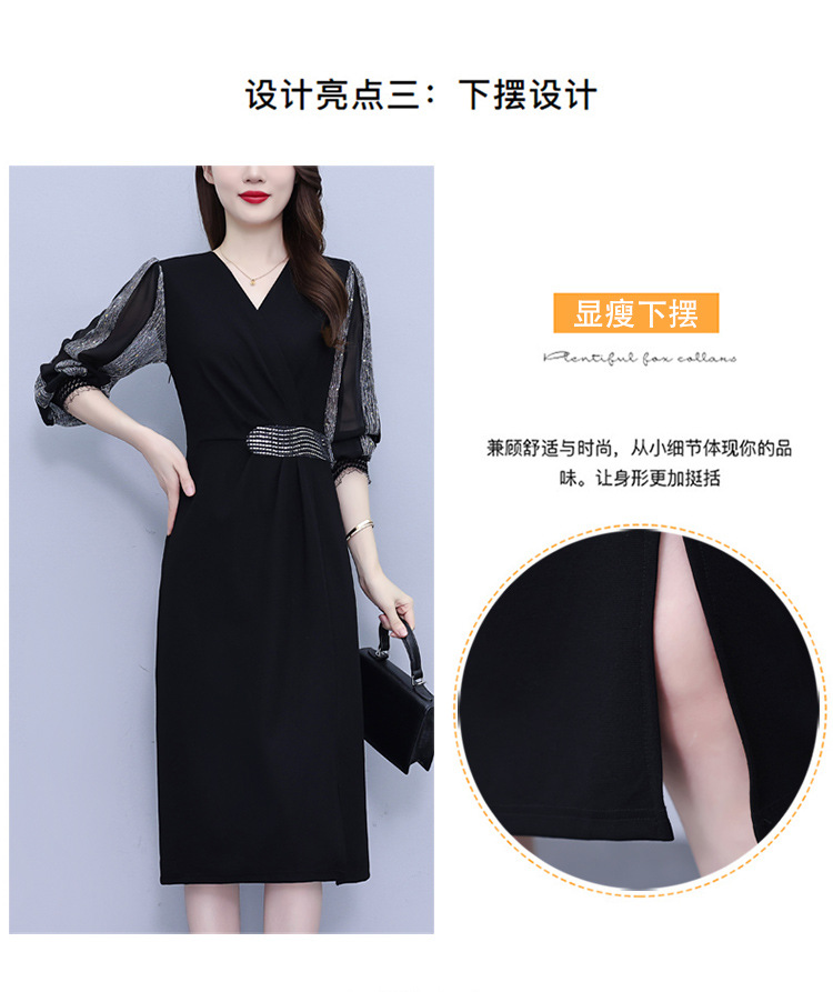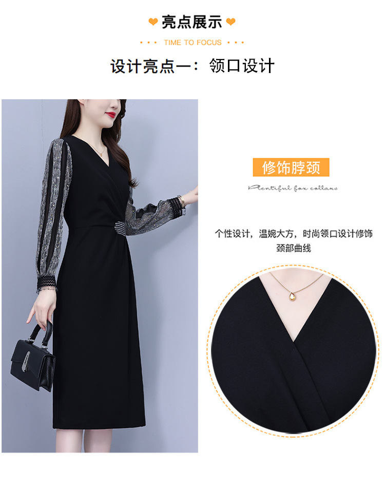 雀说新款时尚洋气V领撞色拼接显瘦开叉中长裙AL2623
