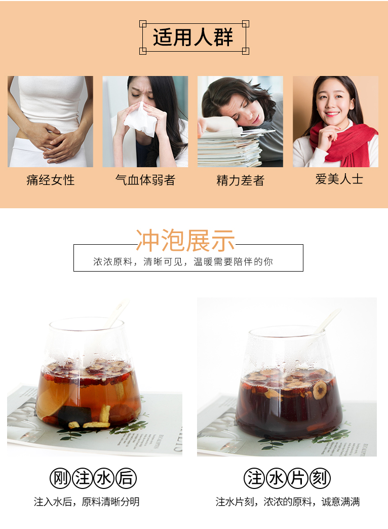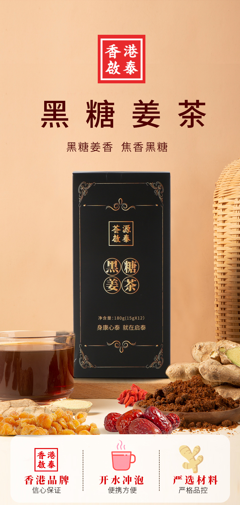香港启泰 红糖黑糖姜茶月经大姨妈姜枣茶黑糖姜母茶男女红枣桂圆枸杞姜糖茶