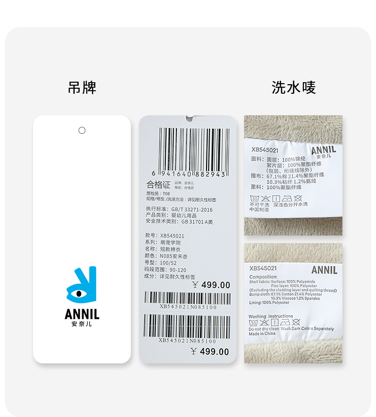 【实体店同款】男童短款棉衣冬季新款安奈儿童装XB545021