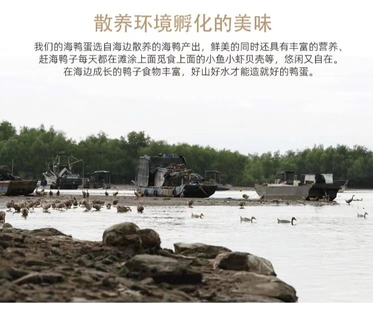 广西的海边在滩涂上放养海鸭