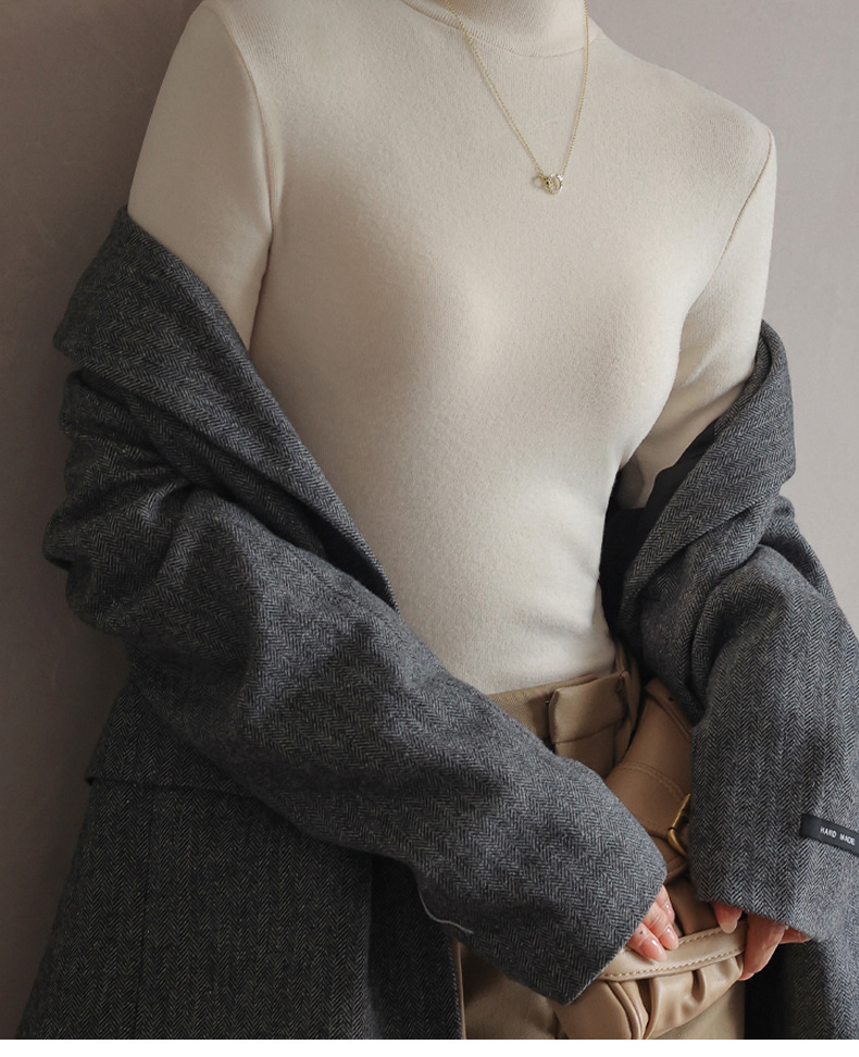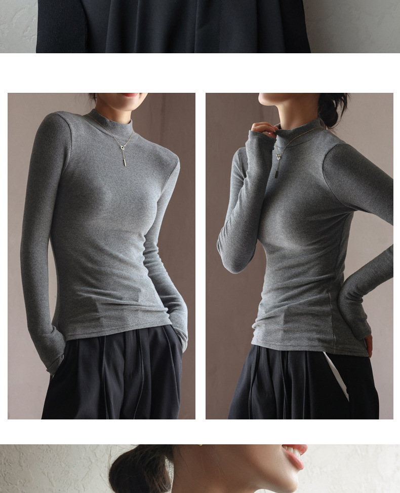 雀说 半高领中领打底衫女内搭加薄绒修身长袖上衣1675