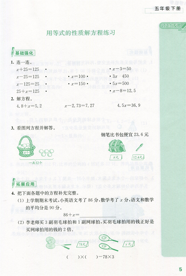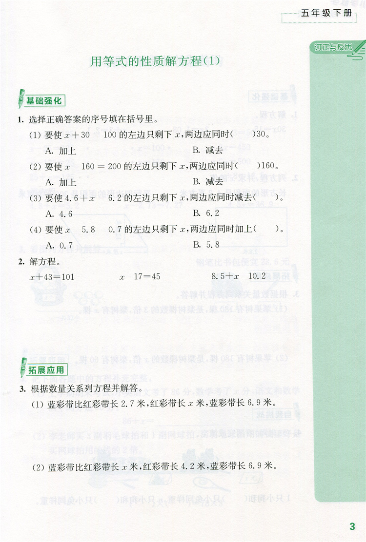 2026春 练习与测试 不含试卷 小学数学五年级下册5下 苏教版 小学同步教辅教材配套用书 江苏凤凰教育出版社