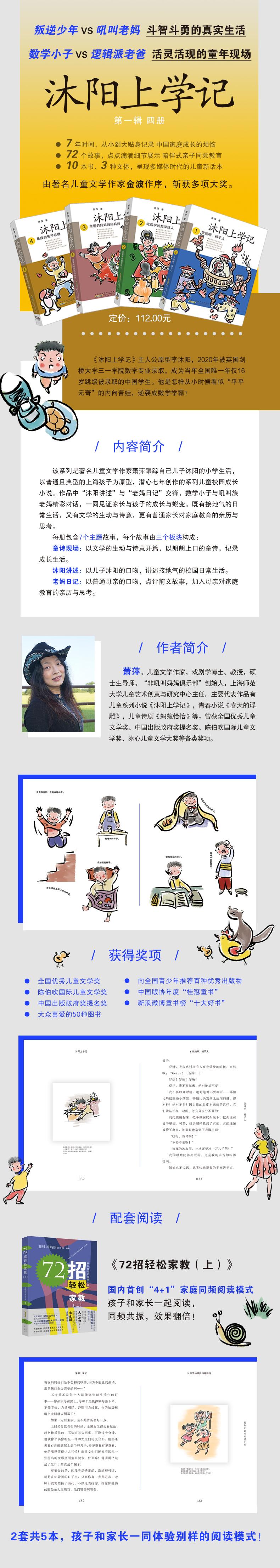 该系列是有名儿童文学作家萧萍跟踪自己儿子沐阳的小学生活,以普通且典型的上海孩子为原型,潜心七年创作的系列儿童校园成长小说。作品中“沐阳讲述”与“老妈日记”交锋,数学小子与吼叫族老妈精彩对话,一同见证家长与孩子的成长与蜕变。既有接地气的日常生活,又有文学的生动与诗意,更有普通家长对家庭教育的亲历与思考。每册包含7个主题故事,每个故事由三个板块构成:童诗现场:以文学的生动与诗意开篇,以朗朗上口的童诗,记录成长生活。沐阳讲述:以儿子沐阳的口吻,讲述接地气的校园日常生活。老妈日记:以普通母亲的口吻,点评前文故事,加入母亲对家庭教育的亲历与思考。