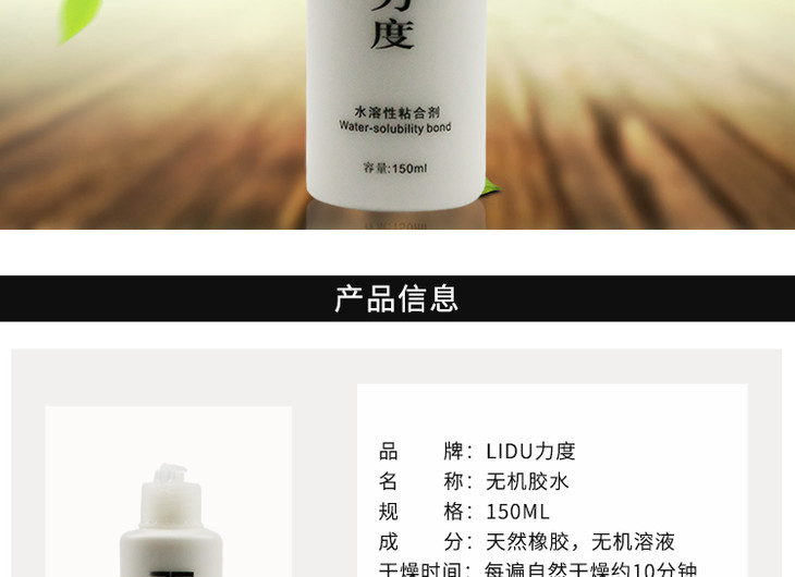 瓶口包装独特:使用人容易控制出胶量、避免了出胶量过大容易外流和开盖后的遗撒问题,避免了大瓶口包装使白胶与空气接触后容易变质、结块的问题。