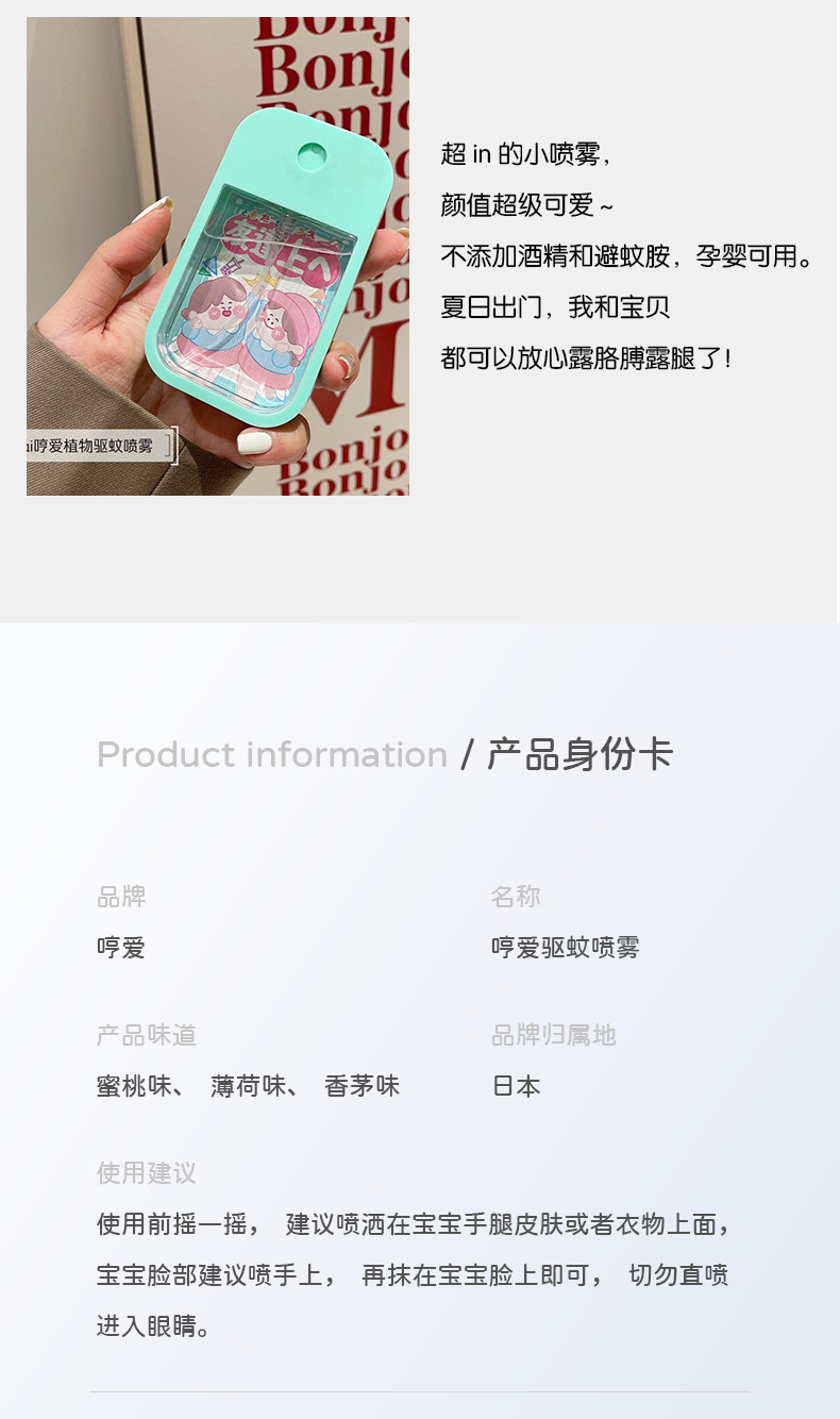 【3瓶立减17元】日本哼爱雾化喷雾驱蚊水40ml/瓶植物驱蚊更安全母婴均可用长效防蚊驱蚊让你整个夏天都无忧