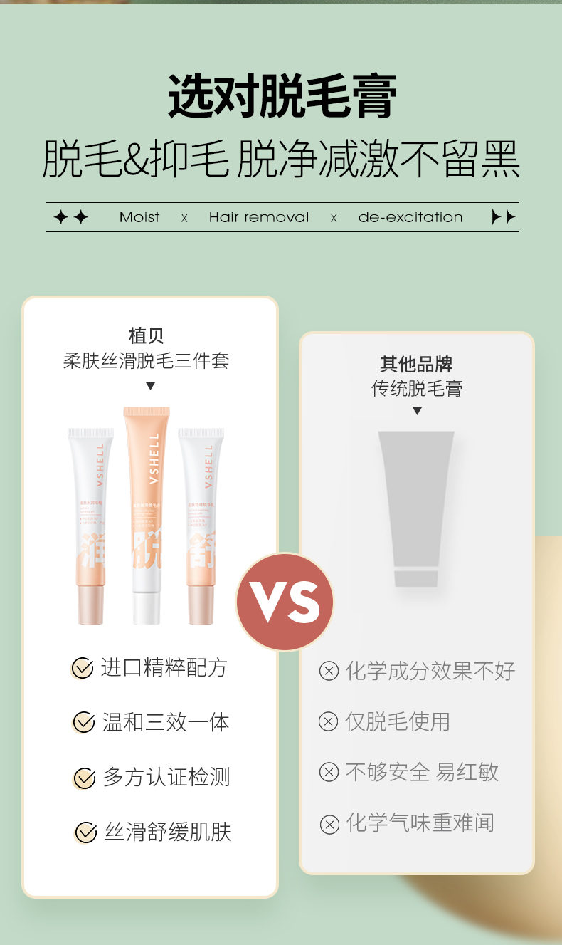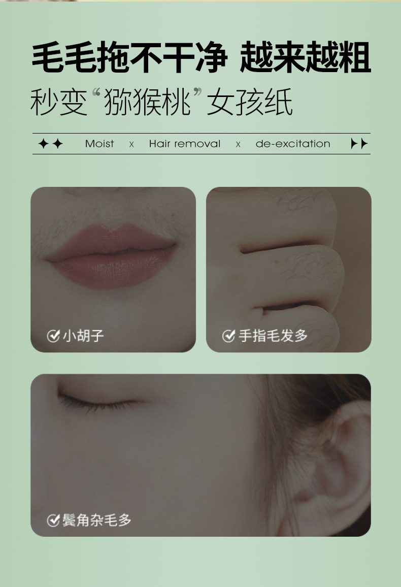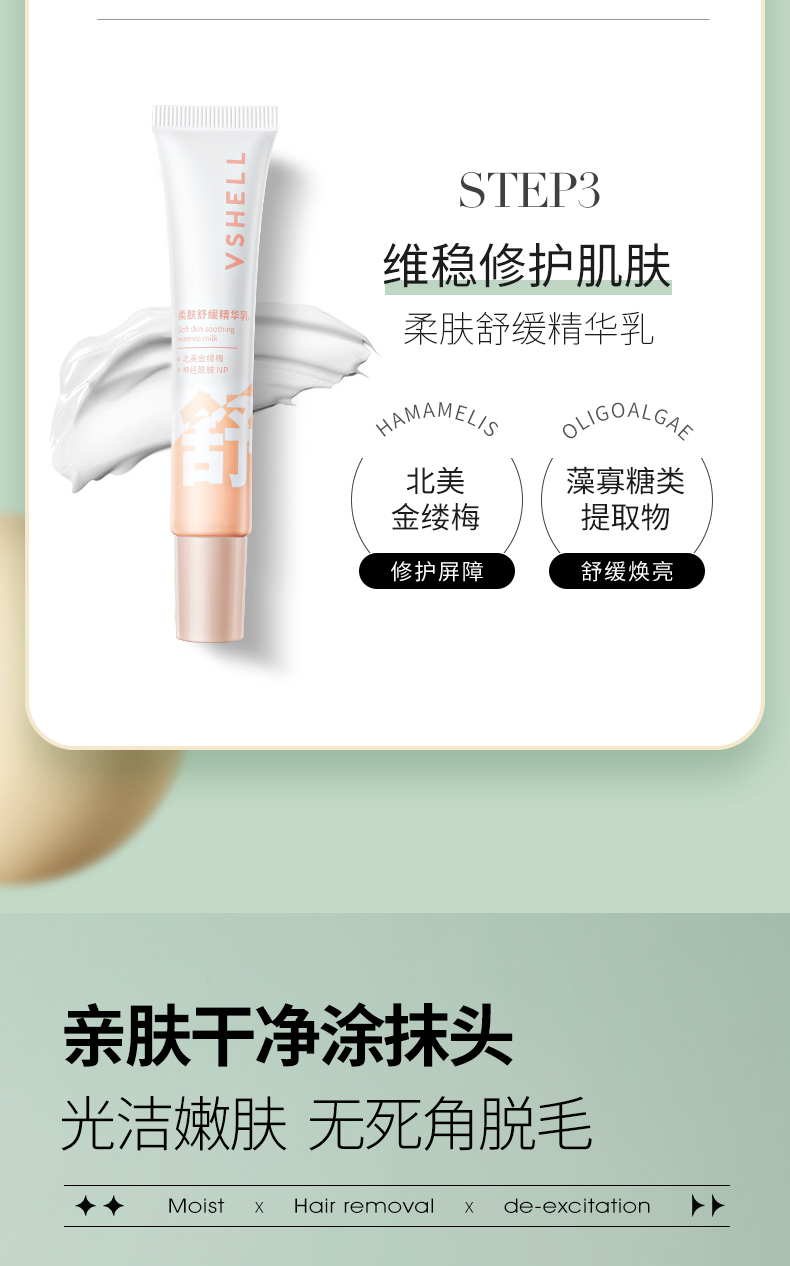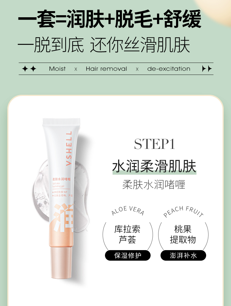 【一脱到底 还你丝滑肌肤】植贝柔肤丝滑唇部脱毛三件套 一套=润肤+脱毛+舒缓 去小胡子手脚毛腋下毛 温和亲肤 干净嫩肤 不做毛手毛脚女孩