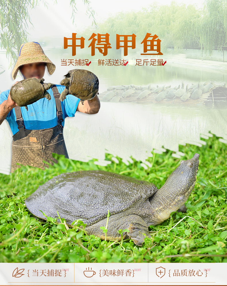 中得甲鱼 鲜活桃花鳖 外塘生态散养 公甲鱼1.5斤/只
