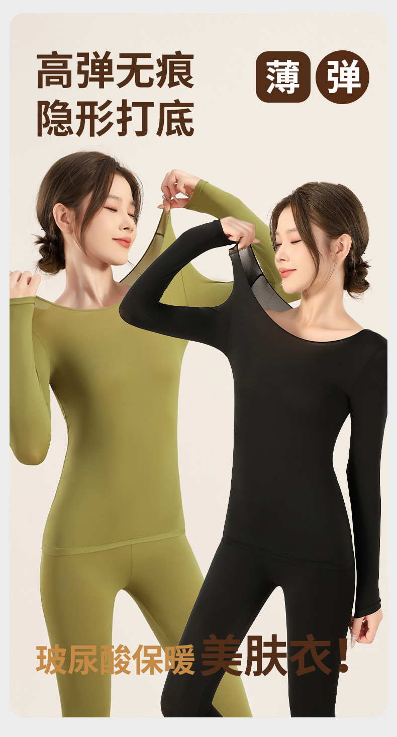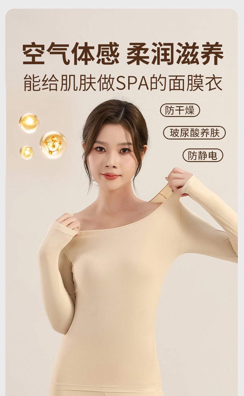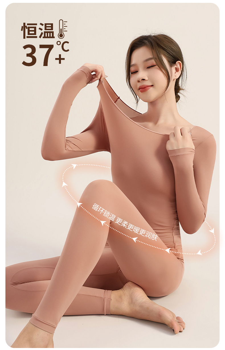 热卖39.9开秒❗️❗️❗️【轻若无感❗️ 锁温聚热 | 养肤润肤 | 柔滑贴肤】37度超薄发热保暖内衣女士秋衣秋裤套装肌底美肤衣打底衫面膜冬季。hb