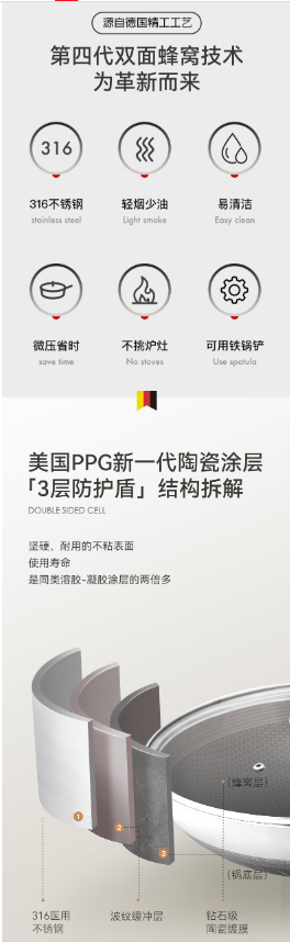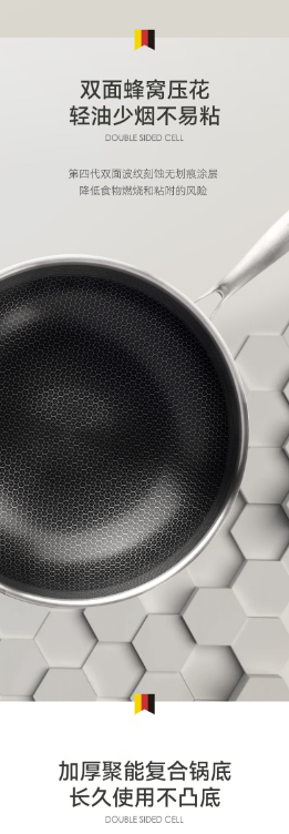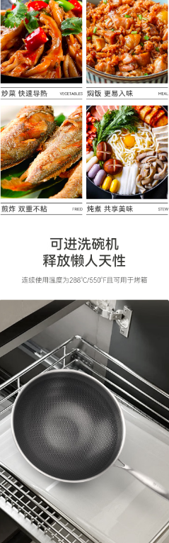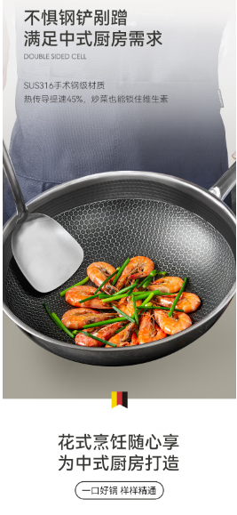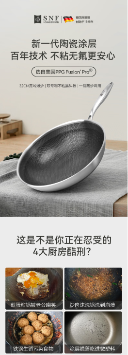 施耐福 T5 2.0系列蜂窝不锈钢中式炒锅(32cm)