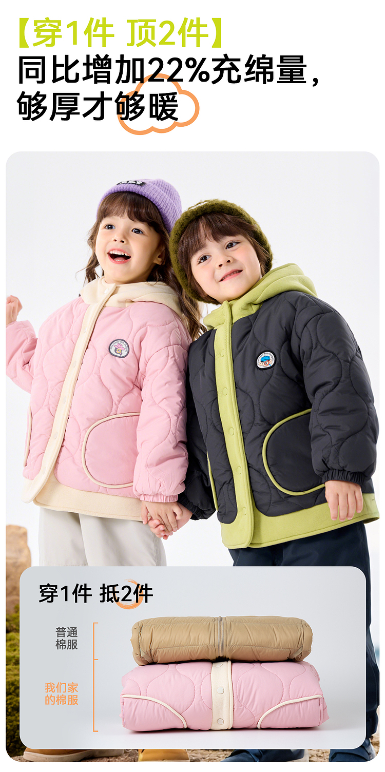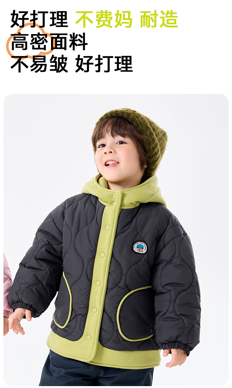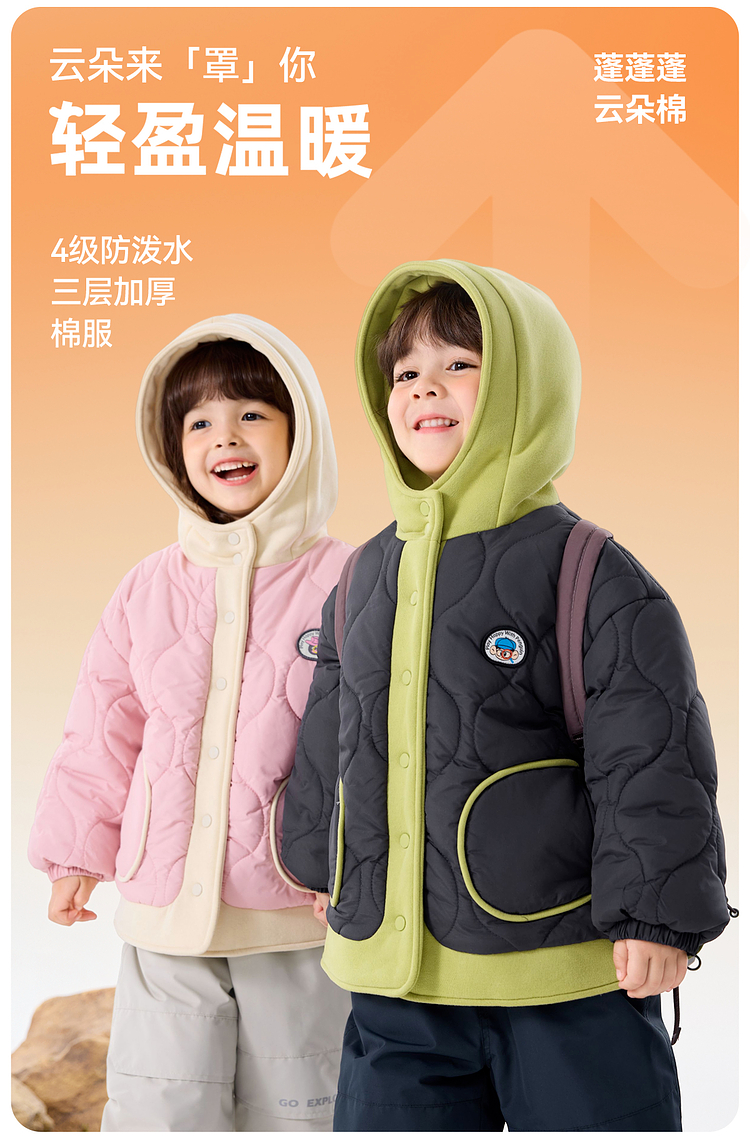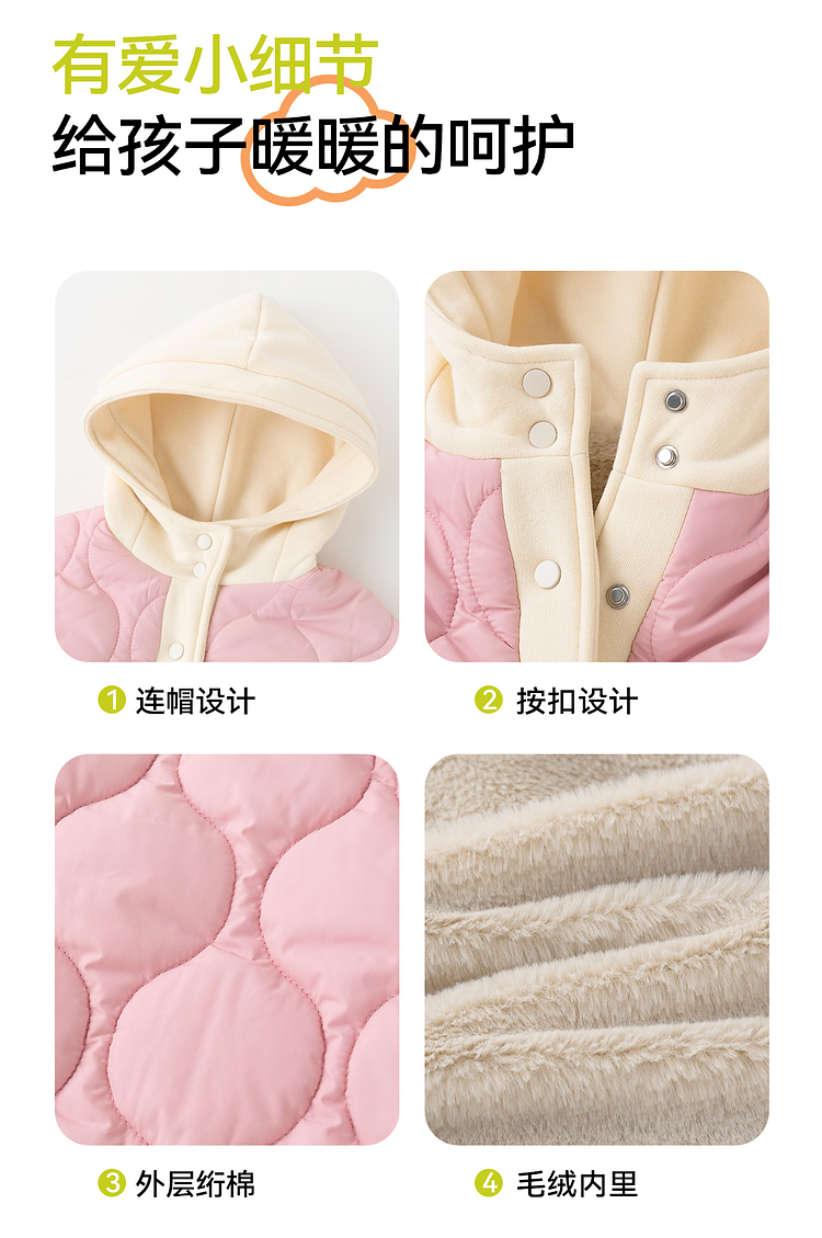 嘟嘟家男童棉服冬季儿童防泼水连帽外衣女童百搭短款加厚洋气外套