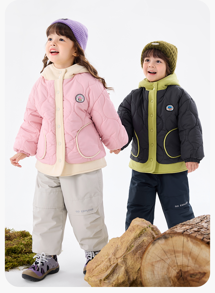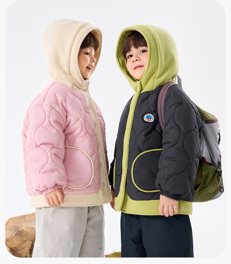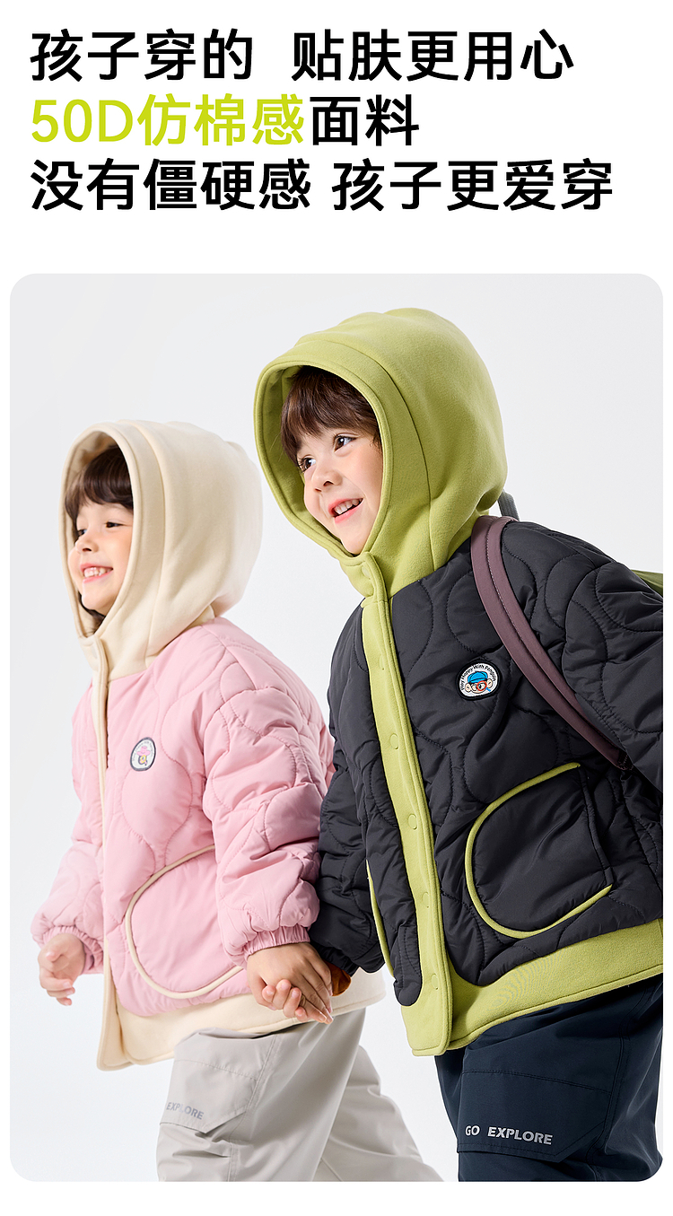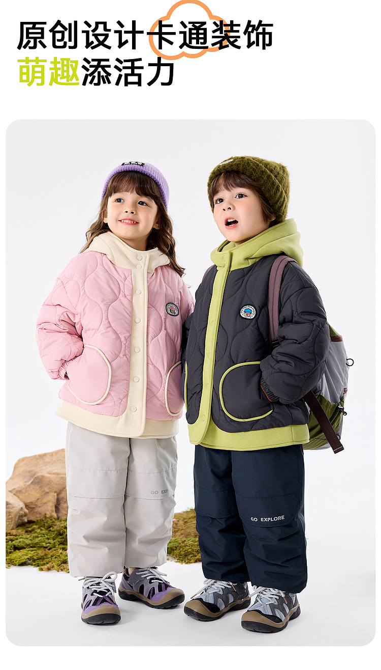 嘟嘟家男童棉服冬季儿童防泼水连帽外衣女童百搭短款加厚洋气外套