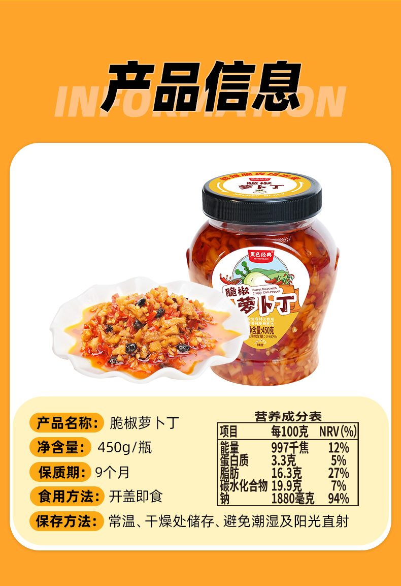 【57.6元任选3件】黑色经典脆椒萝卜丁450g/瓶 香辣脆爽