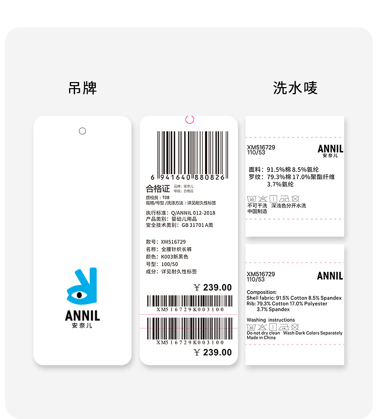 男女童全腰针织长裤春季新款安奈儿童装实体店同款XM516729