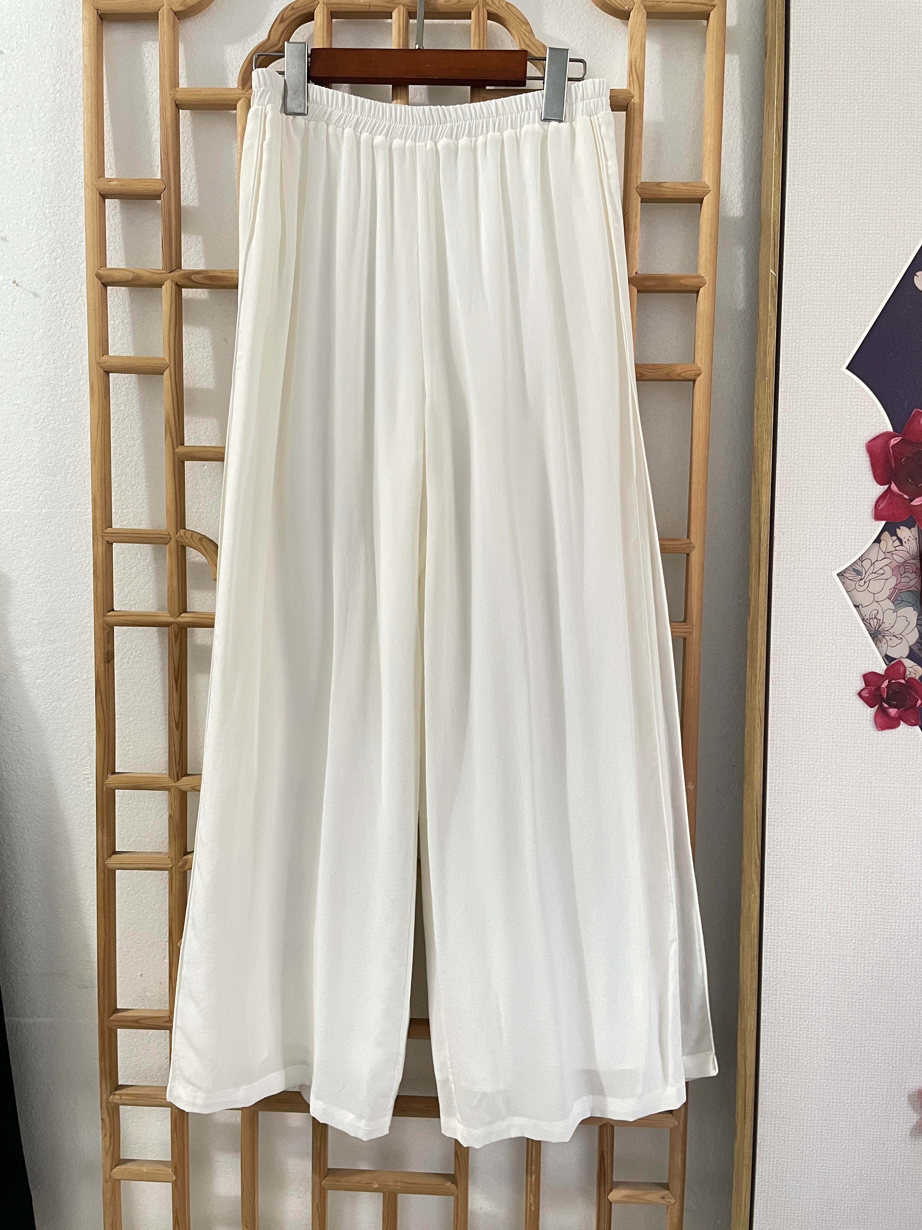 「断码清仓」精品新中式100%桑蚕丝双层侧百褶阔腿裤真丝裤 M码 ZFYY281