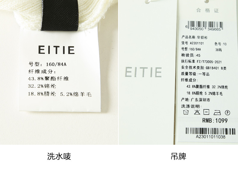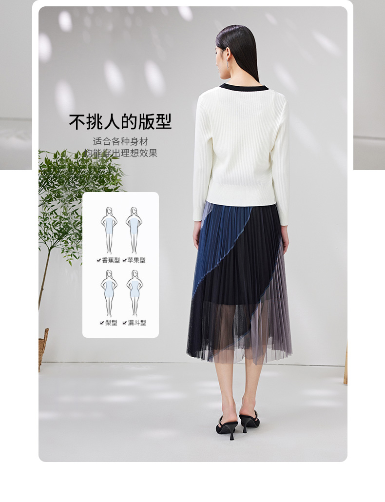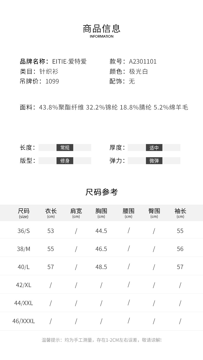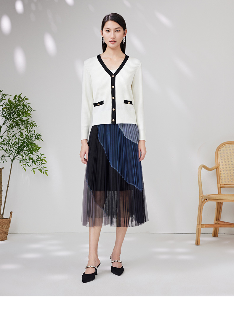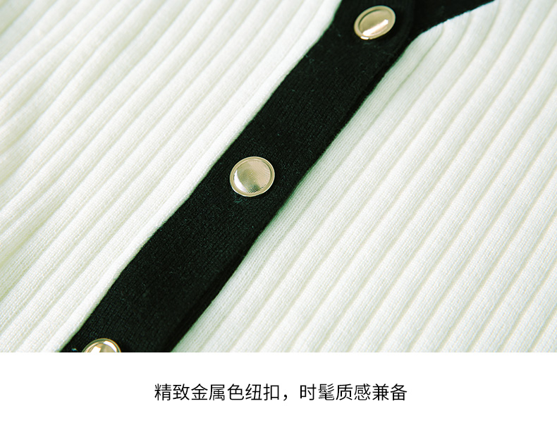 EITIE爱特爱春季新款撞色简约显瘦通勤百搭白色V领针织开衫A2301101
