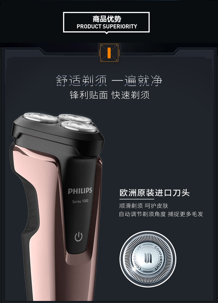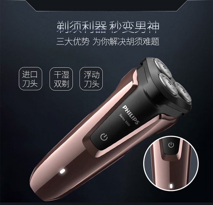 【品牌直发】飞利浦PHILIPS电动剃须刀全身水洗男士胡须刀电须刀三刀头剃须刀S1060