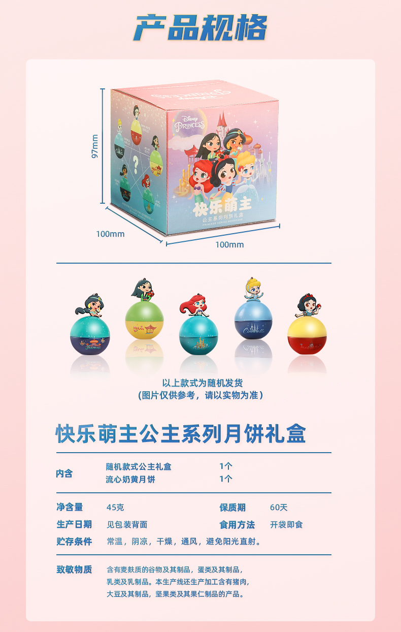 【盲盒包装随机】迪士尼月饼礼盒快乐萌主礼盒装中秋送礼流心奶黄联名白雪公主盲盒高档