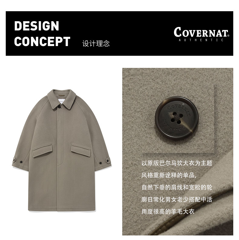 Covernat冬季新品羊毛巴尔马坎大衣毛呢长外套CO2304CT05